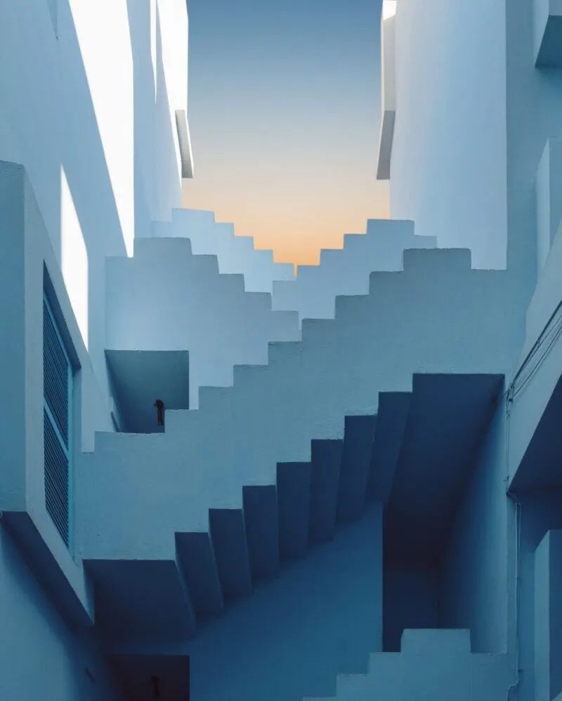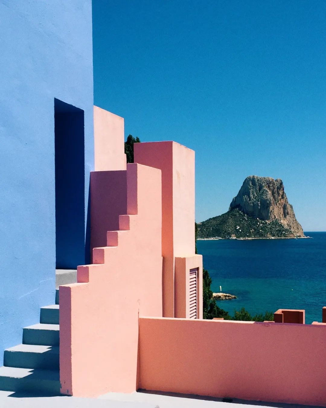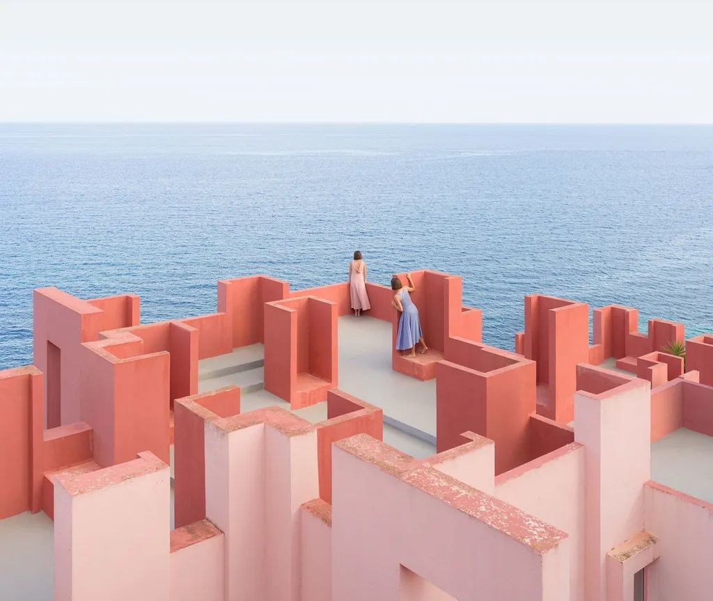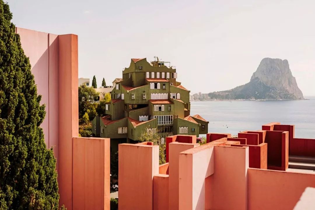 從巴塞隆納一路南下,你會來到一個名叫卡爾佩(Manzanera, Calpe, Spain)的小鎮。這座世界知名的網紅小鎮,因為里卡多的建築而成為打卡勝地。如果你玩過手機遊戲《紀念碑谷》,那麼你早就熟諳這些粉藍相間的鋸齒般高牆,以及迷宮般回環往復的十字走廊。