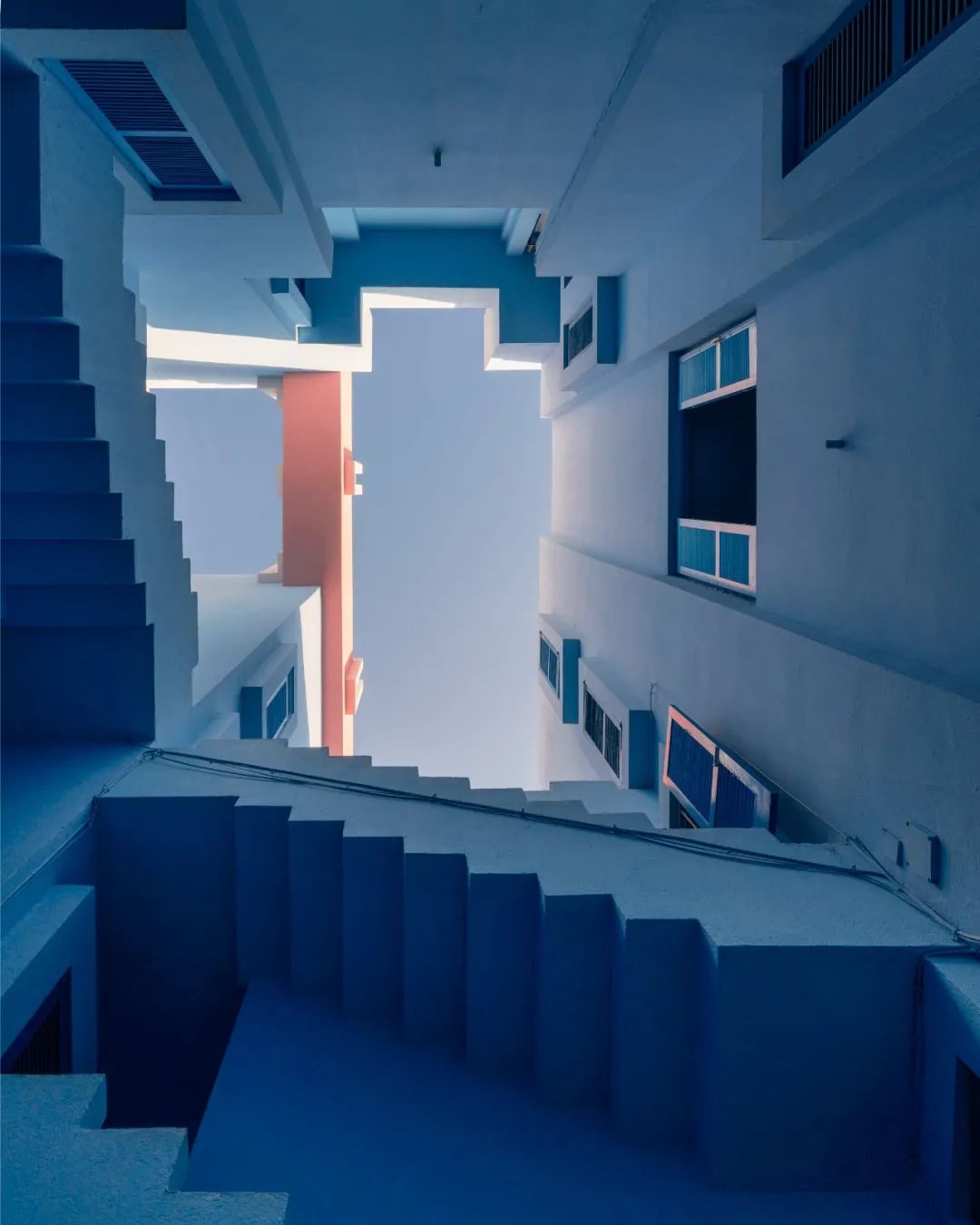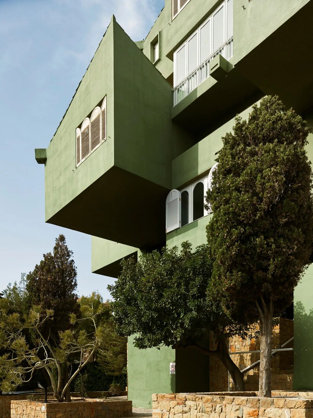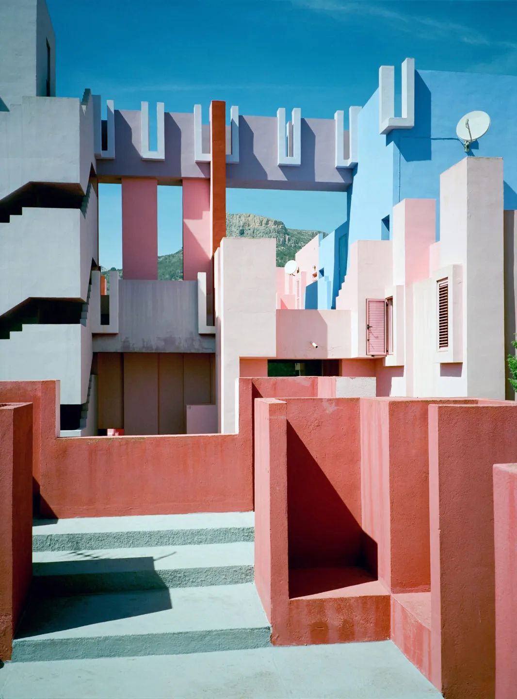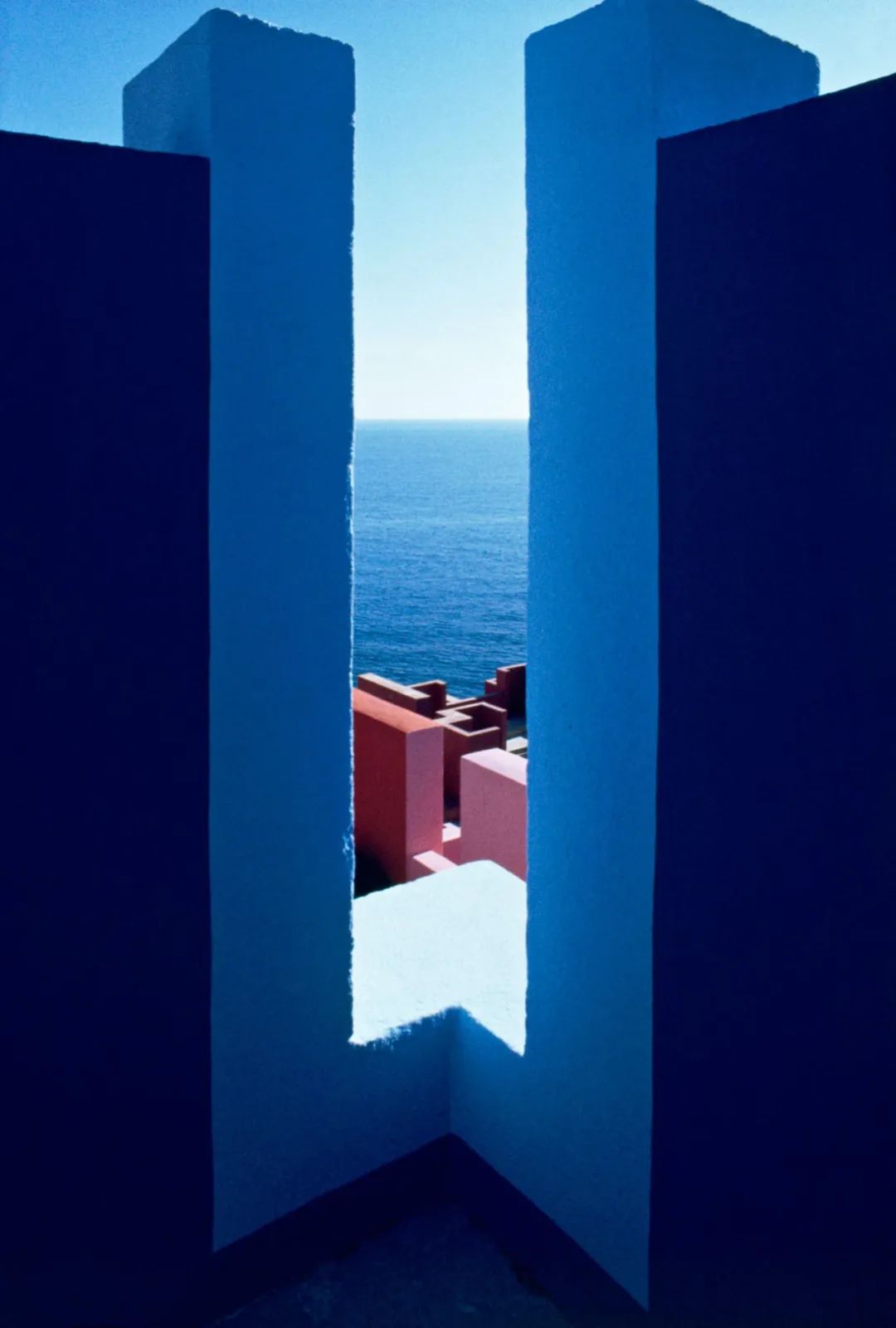 從巴塞隆納一路南下,你會來到一個名叫卡爾佩(Manzanera, Calpe, Spain)的小鎮。這座世界知名的網紅小鎮,因為里卡多的建築而成為打卡勝地。如果你玩過手機遊戲《紀念碑谷》,那麼你早就熟諳這些粉藍相間的鋸齒般高牆,以及迷宮般回環往復的十字走廊。