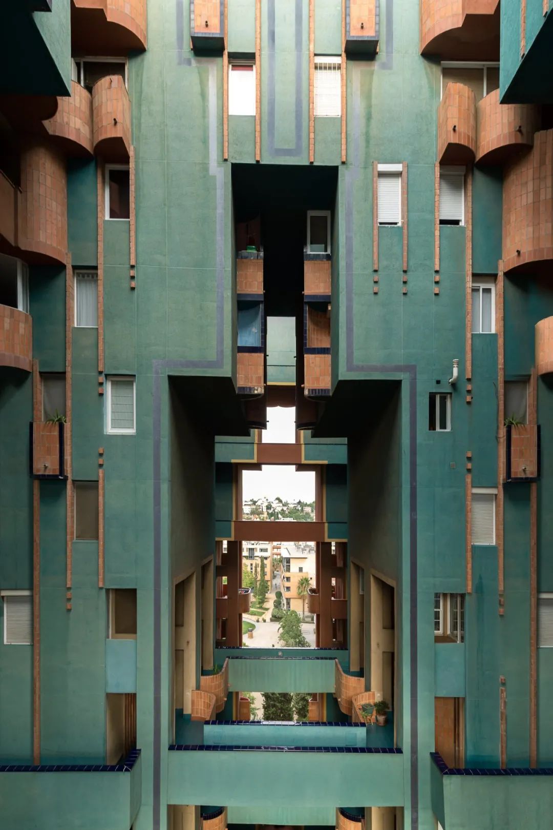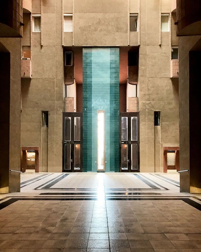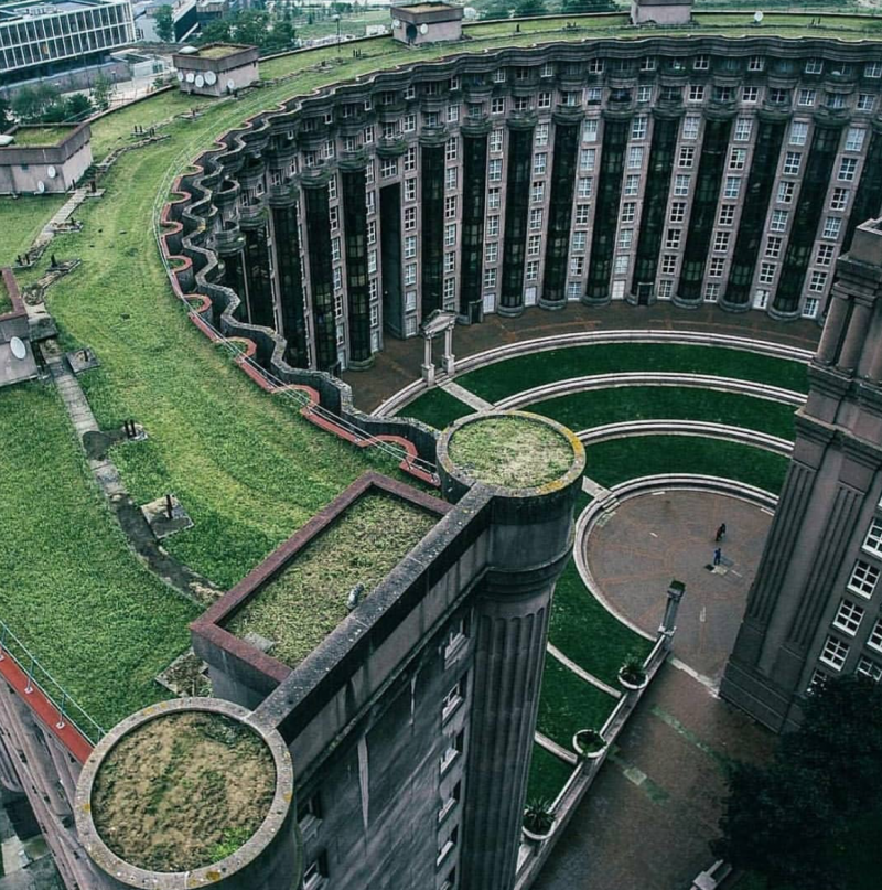 對於普通居民住宅區的設計,里卡多卻採用弧形定義整體建築,並用嚴格的軸線和平面排布,以及垂直的線條和整齊的幾何形式重複,形成磅礴的氣勢,儼然是宮殿的態勢。