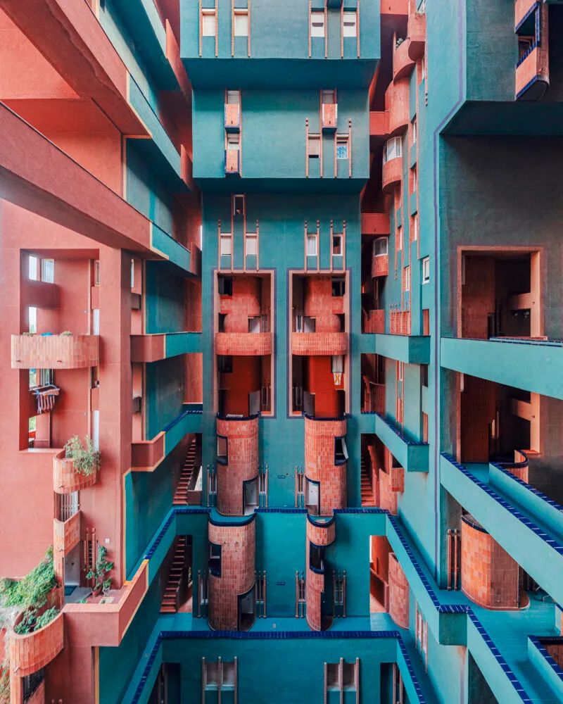 這就是著名西班牙建築師,里卡多 • 波菲(Ricardo Bofill)的代表作《紅牆(La Muralla Roja)》,也是世界建築設計師和攝影師們,熱衷於打卡的現象級網紅地標景點。