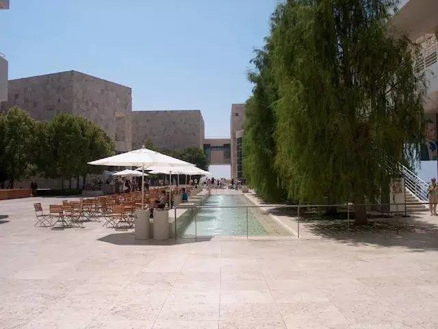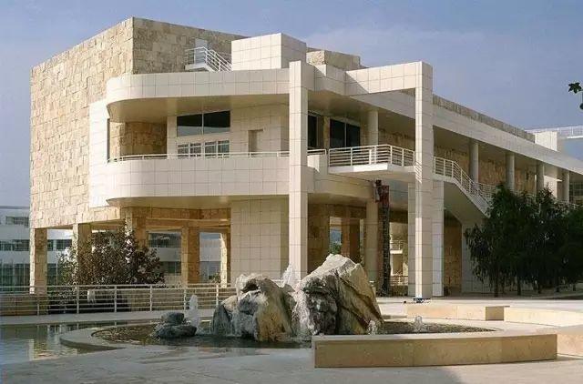 格蒂中心(Getty Center)。座落於洛杉磯,是世界上收藏最豐富的私人博物館,由億萬富翁格蒂捐贈建立,由洛杉磯建築師理查德‧邁耶設計。