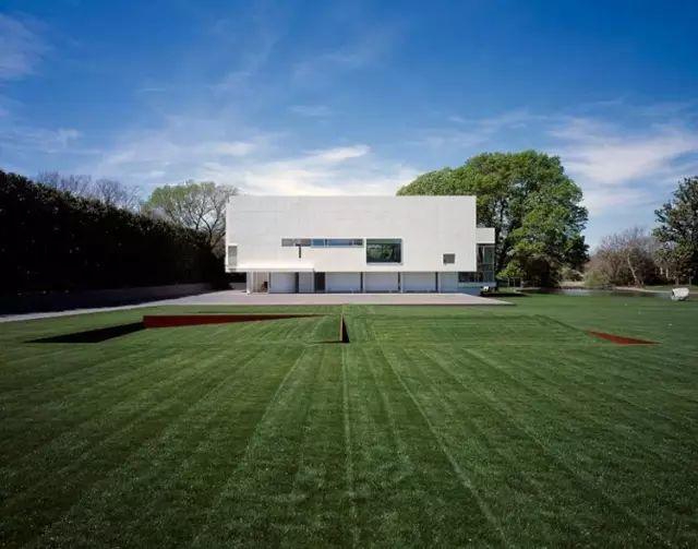 在自然的環保下,白色建築突兀地矗立在中央,彷彿是一場和大自然的戲劇性對話。