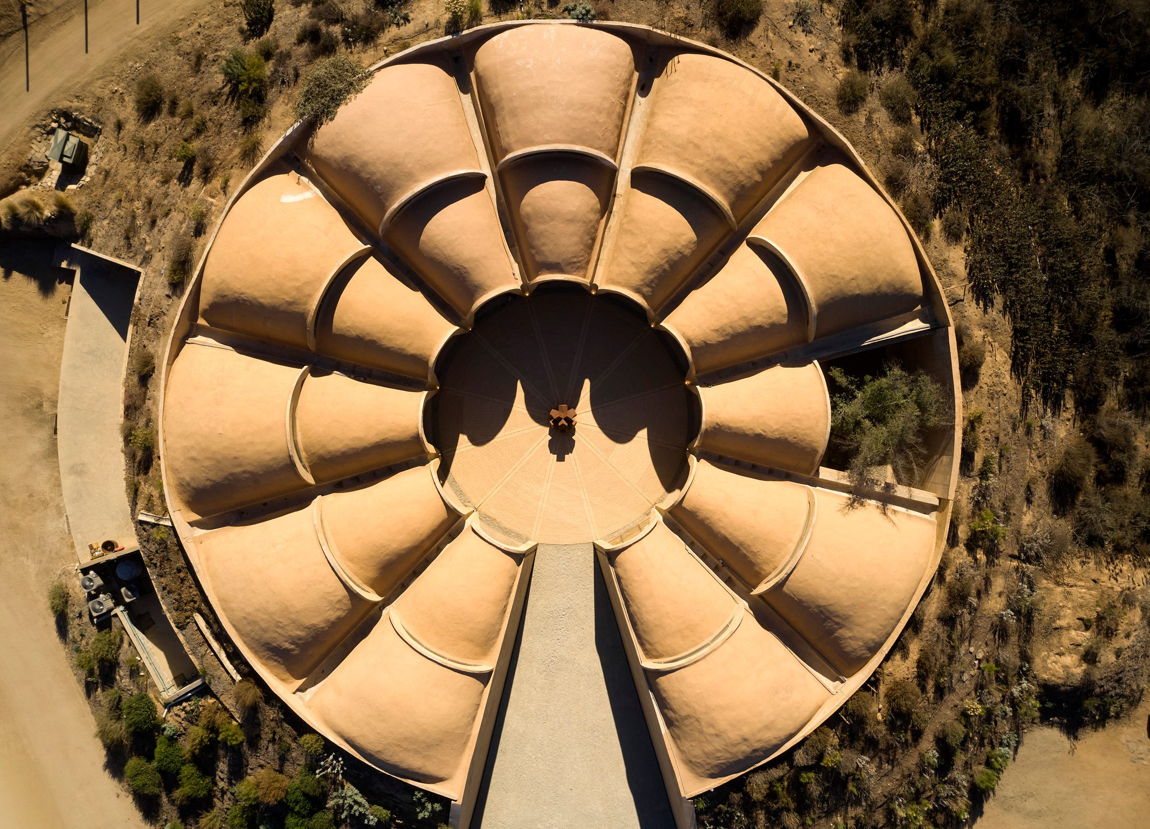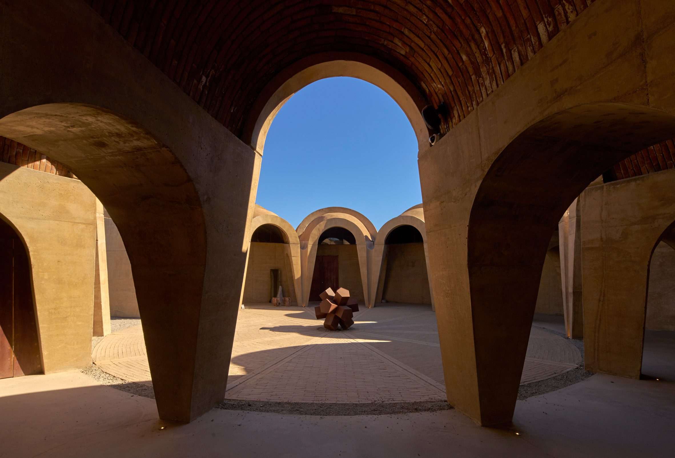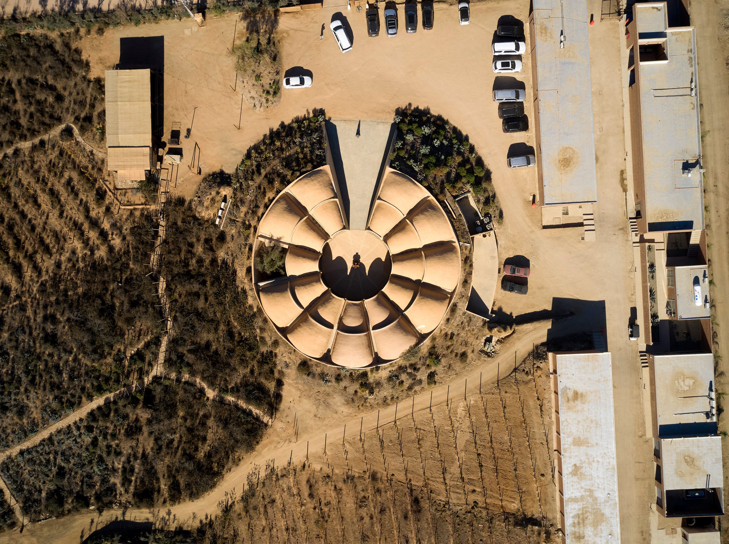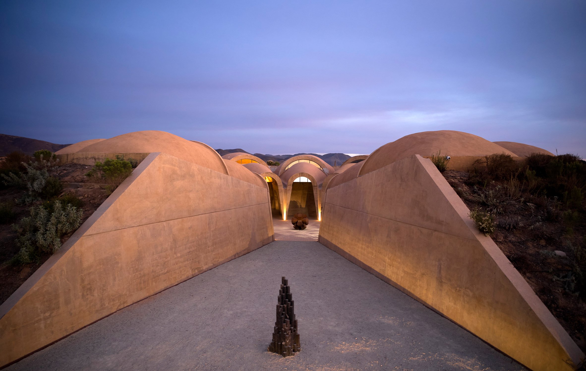 名為「象形圖」(Pictograma)的建築,藉由向外輻射的拱頂結構,宛若大地羅盤,為這片新興的葡萄酒產區定錨。瓜達盧佩谷素有「墨西哥納帕谷」之稱,近年在全球葡萄酒版圖上迅速崛起,此案的誕生,不啻為當代建築語彙與此地風土之間展開一場深邃對話,意圖在醇酒之外,另闢一番值得人們吟詠的風景。