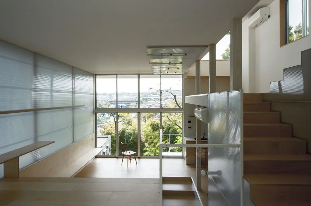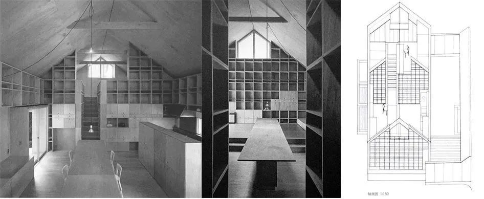 與之相對的,下面一層則是根據其他條件來進行劃分的,也就是根據功能用途來形成場所,所以其自身就未必具有強勢的建築框架。因此,看上去下面一層要素的存在狀態就被凸顯了出來。我想,這也就意味著更加積極的「能夠生活的家」。