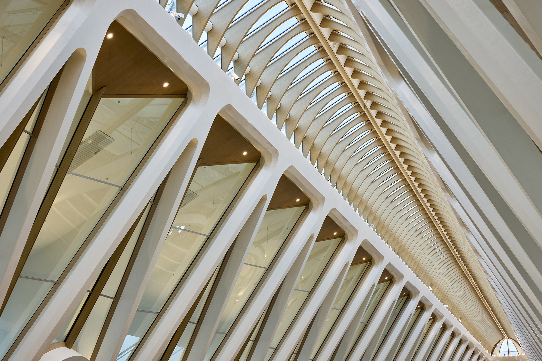 整體結構由一根根肋骨般的構件組成,其呈現的韻律感,充分展現出 Santiago Calatrava 在建築與工程之間持續對話的設計風格