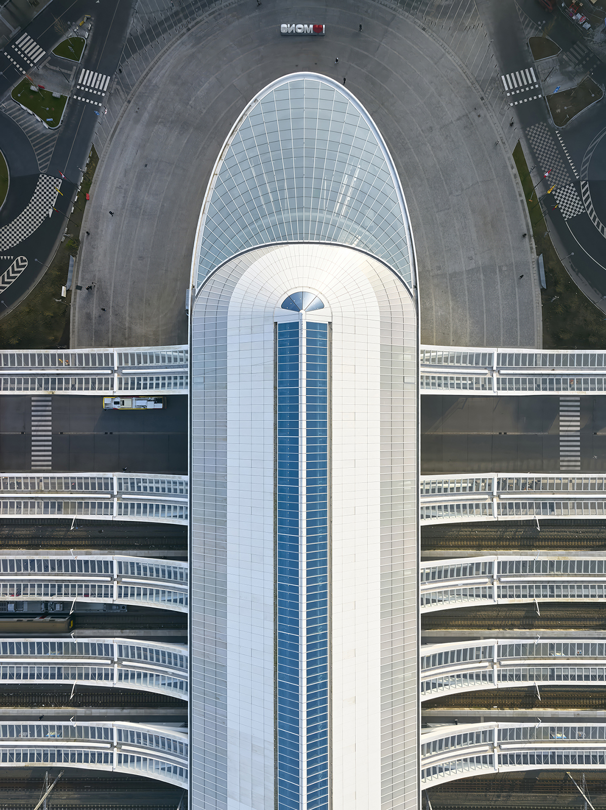 蒙斯車站的設計,超越了雕塑般的純粹形式,更在城市機能的連續性上達成了過去數十年來付之闕如的重大突破。高架的廊道昂然跨越下方繁忙的鐵軌,以寬綽的步行通道將蒙斯南北兩側重新連結,可謂匠心獨運。