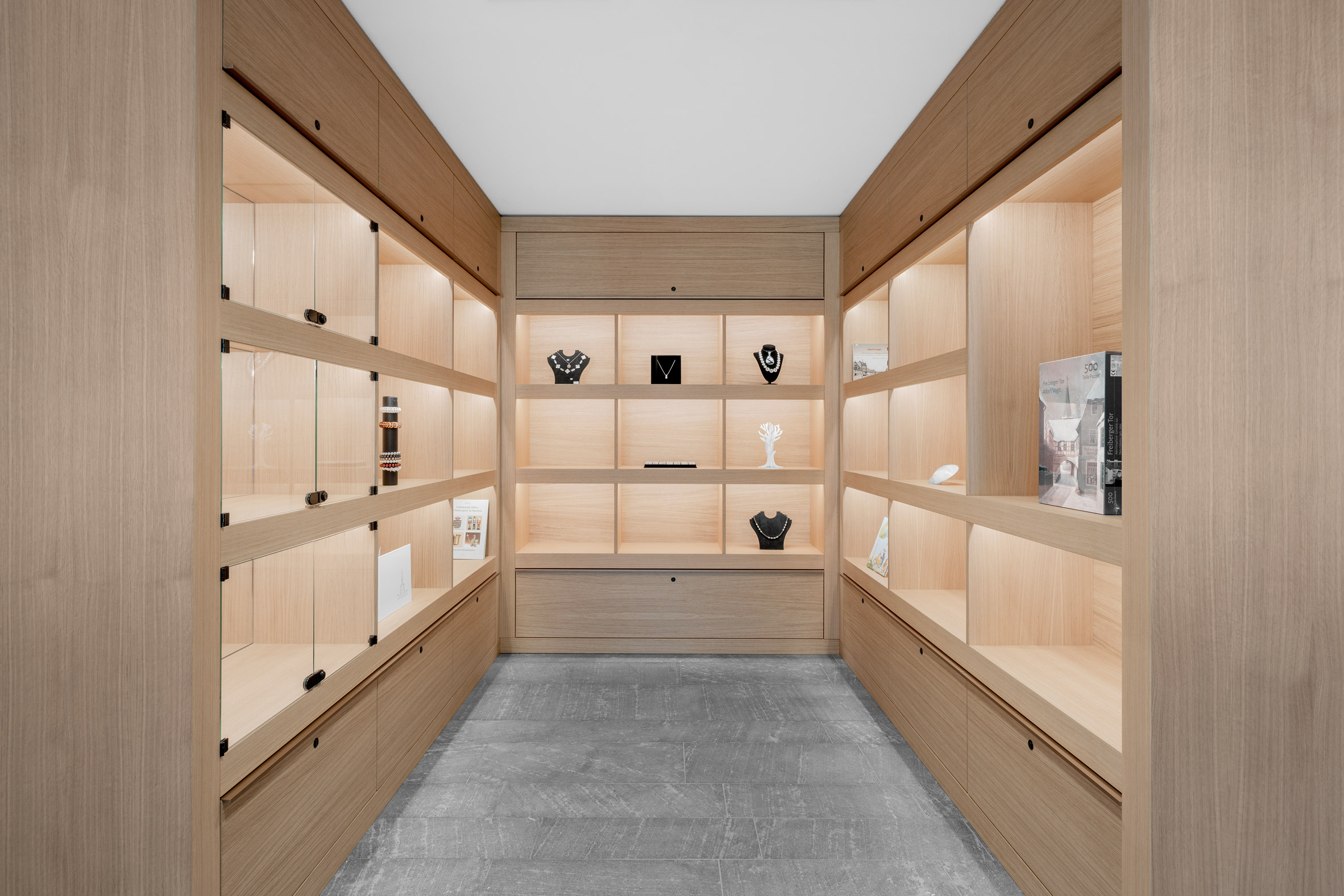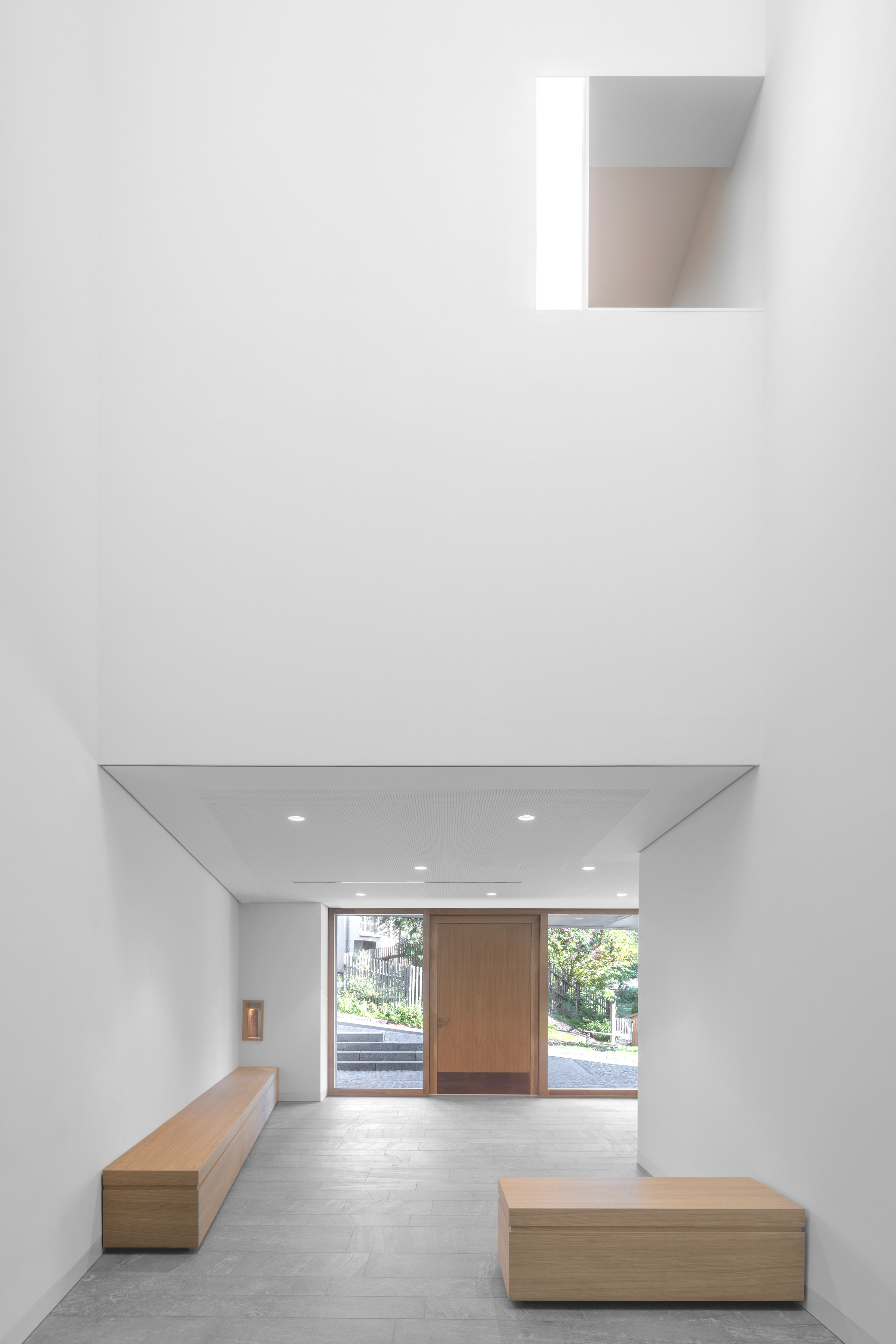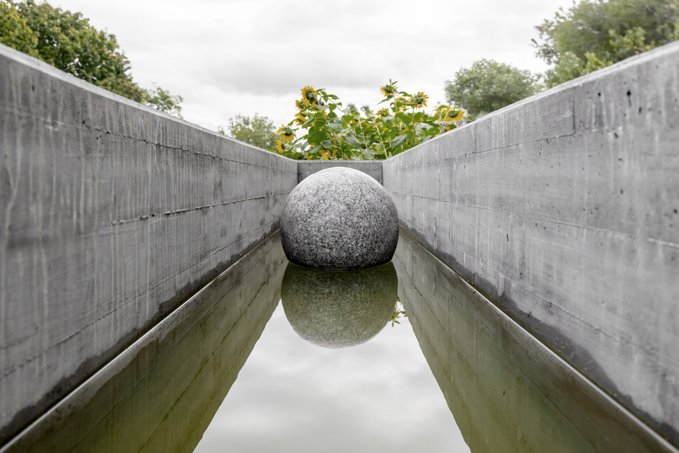 設計團隊從淡水珍珠蚌的有機型態汲取靈感,創造出一座外觀粗礪、內部細緻的不規則量體。建築師描述這棟建物如同一枚沉睡於水岸的貝殼,灰色混凝土外牆帶有被溪流沖刷後的原始質感,並透過懸挑結構與雨水引導系統,讓立面呈現出生動的動態美感。與室內潔白、平滑且具反射性的表面形成鮮明對比,反映出珍珠母貝最珍貴的內涵,讓人一目了然其文化核心,喚起觀者對傳統捕珠工藝的崇敬。