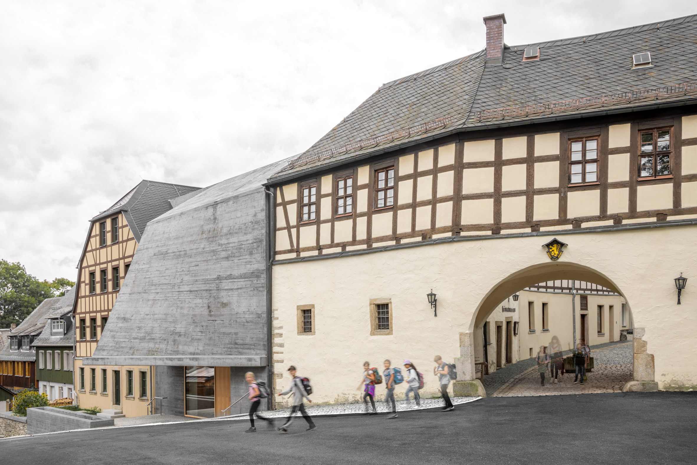 在德國薩克森州的古老城鎮阿多夫(Adorf),一場關於材料與記憶的實驗正在展開。德國建築師事務所 Schulz und Schulz 針對一處荒廢多時的土地,進行了極具張力的增建計畫。