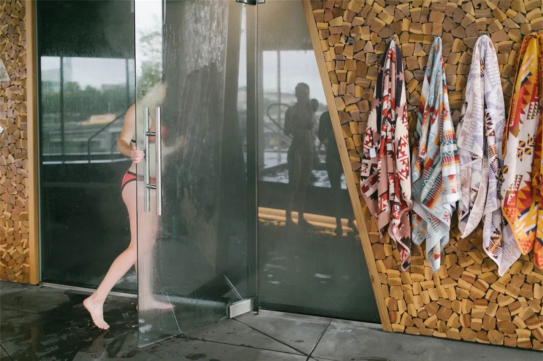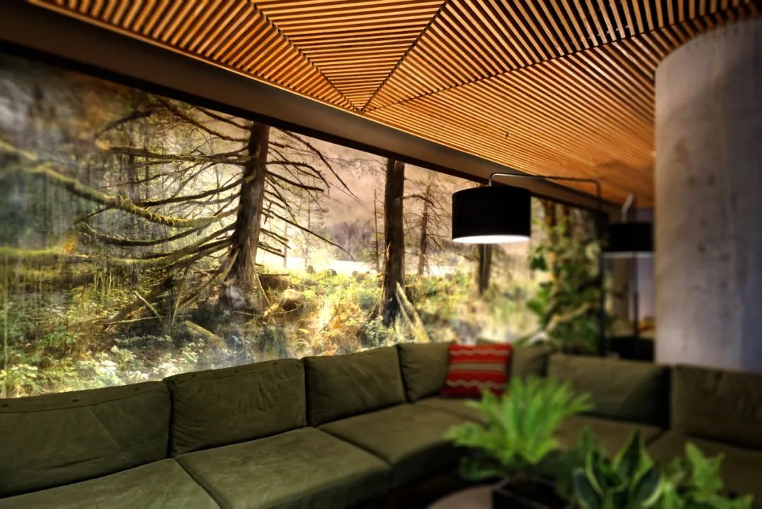 水療中心向景觀開放,露天走廊連接了各個健康活動中心。Knot Springs 的裝飾色調從原始材料中汲取靈感,利用木材、玻璃、鋼材和混凝土等永續發展的材料為水池增色。環境圖形、植栽天花板和小細部透過在混凝土和木材中嵌入資訊和通訊系統來吸引訪客,進而進一步完善和統一使用材料。