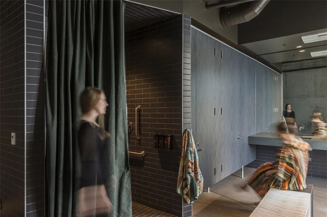 Knot Springs 是一家廣受歡迎的水療和社交俱樂部,專注於健康、保健和社區活動,位於公寓的四樓和五樓(空間設計也由 Skylab 負責)。Knot Springs 的設計靈感來自奧勒岡州東南部阿爾沃德沙漠中的溫泉。高架的庭院景觀和混凝土結構在整個浴室和健身房內起伏,讓人聯想起當地的河堤。