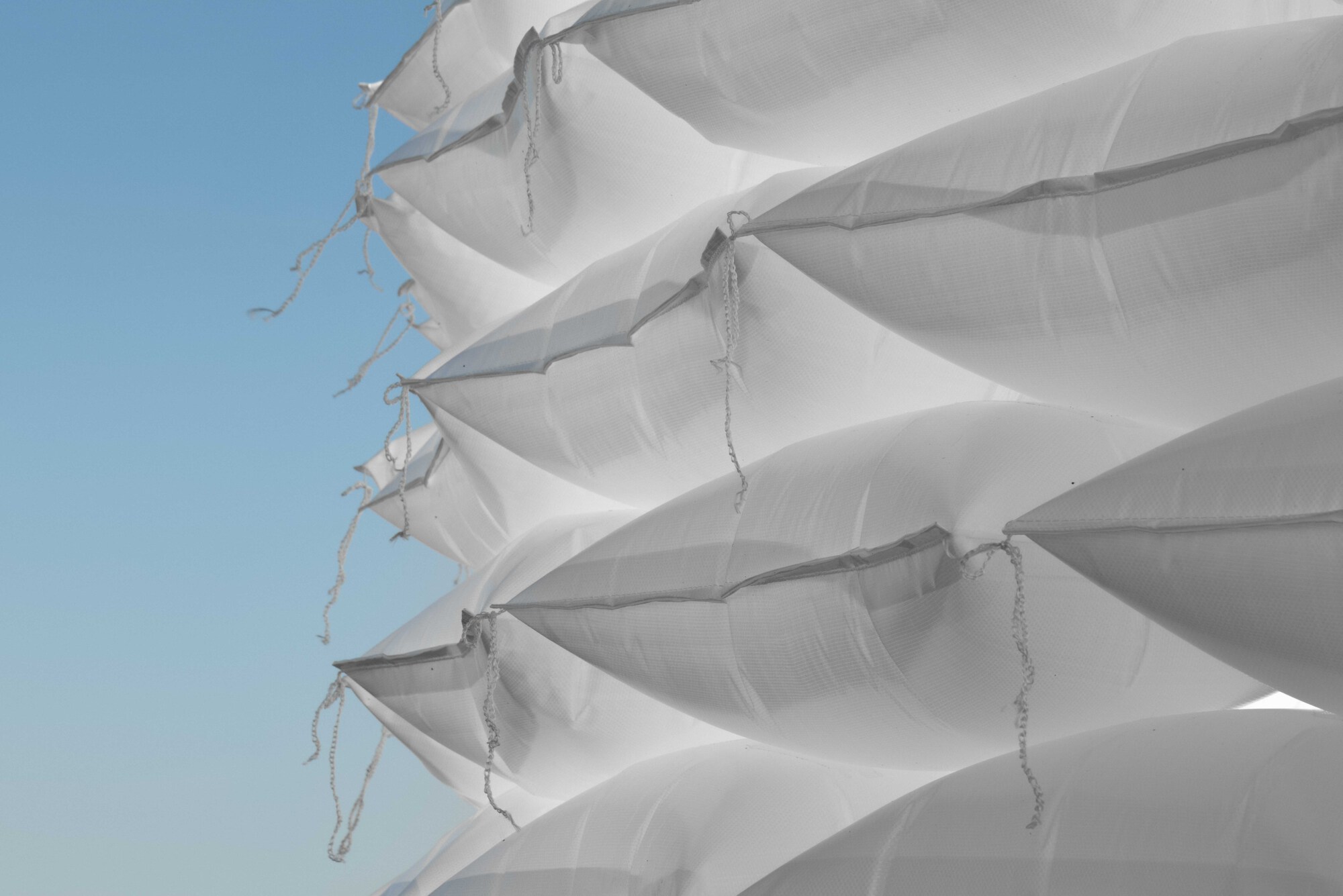 俄羅斯當代藝術家格雷戈里・奧列霍夫(Gregory Orekhov)的最新力作《軟實力》(SoftPower),以視覺隱喻手法重新詮釋沙袋這項深植於戰爭場域與天然災害意象中的物件。奧列霍夫向來以巨型雕塑與大型裝置聞名,善於結合純粹形式與出人意表的材料,創造吸引注意力、激發情感共鳴的藝術品。