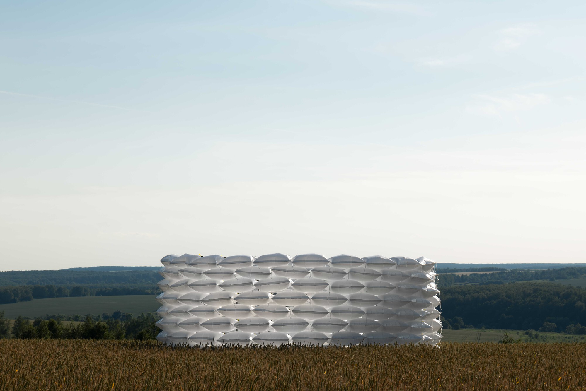 從建築形式觀之,作品的圓形結構摒棄了壁壘的線性對立,創造出一個既圍蔽又開放的場域,不是為了隔絕,而是為了凝聚心神。它是一處靜默的庇護所,一種關於非侵略性韌性的空間研究。然而,其充氣的物質性,也暗示了軟實力本身的脆弱。這座紀念碑並非永恆,它隨時可能洩氣、崩塌,說明了影響力需要持續維護,絕非一勞永逸。奧列霍夫最終完成的,是一項充滿意義的姿態,它將戰爭的語彙轉化為沉思的空間,猶如實踐「化干戈為玉帛」的古老智慧,倡議一種以文化守護世界,而非抵禦世界的可能。