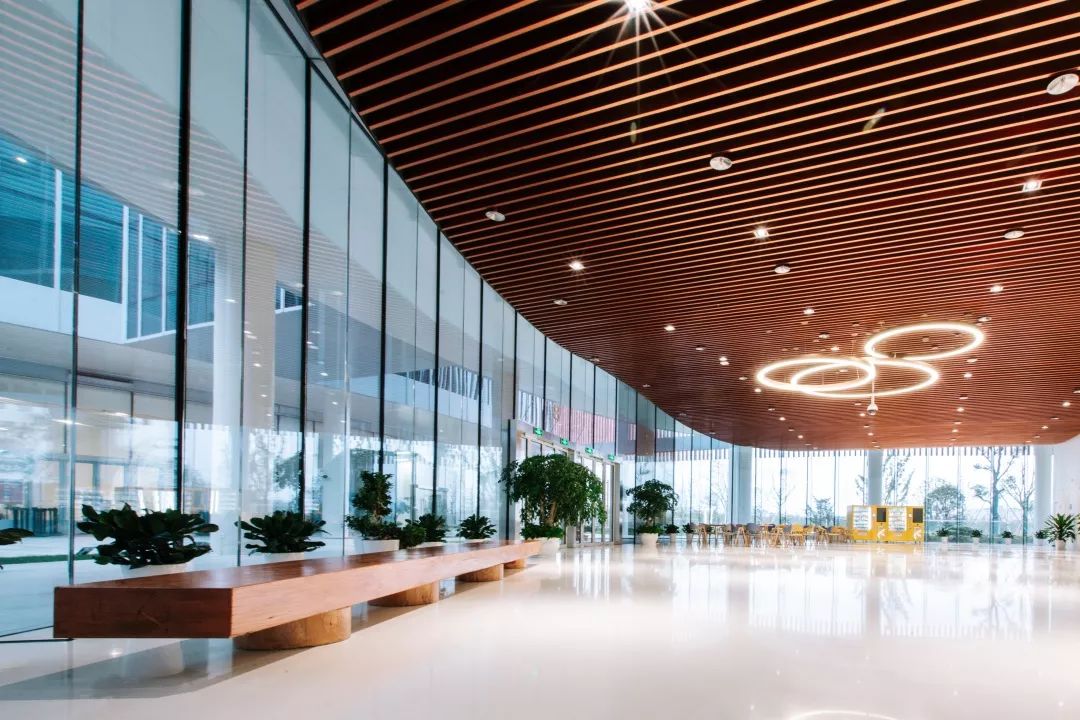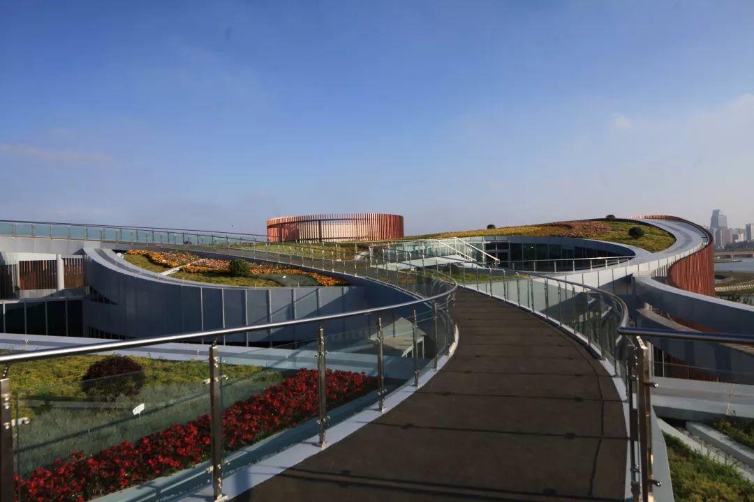 屋頂花園的地形與建築屋頂造型的統一性也為建築的整體性加分不少。屋頂的環形步道可使人們享受360度全方位的湖面景觀。當然,異型的屋頂室內空間也帶來了相當的裝飾工程難度,在各方的共同努力下,室內也達到了一定的空間效果。