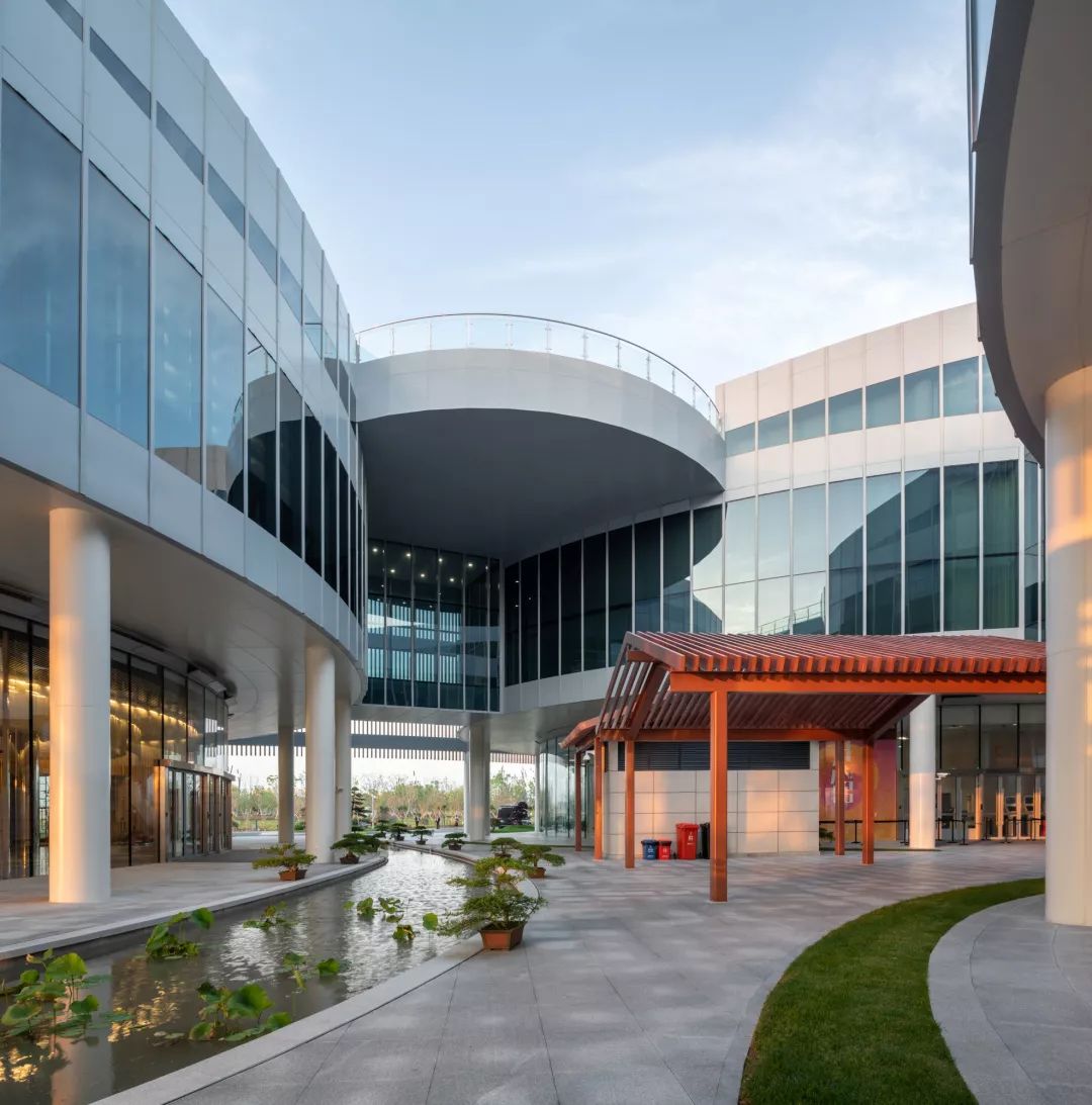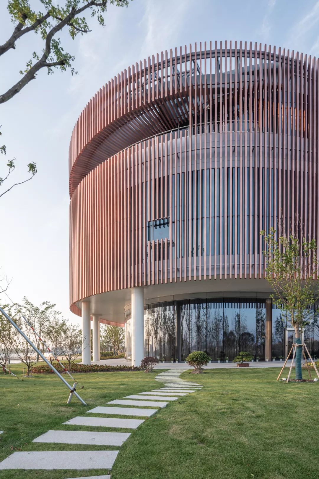 博物館在形體上採用了中國傳統文化中「大珠小珠落玉盤」的詩畫理念,將三個不同功能的“水珠”用銅制百葉環繞起來,構成了古典而又頗具現代感的空間造型。三個功能“水珠”分別是博物館、展示館和活動中心。它們彼此之間既相互分離,又相互聯系。這樣一種若即若離的空間關系,恰到好處地衍生出了半室外公共空間。建築師試圖在這個公共空間裡,營造江南水鄉的空間意境。