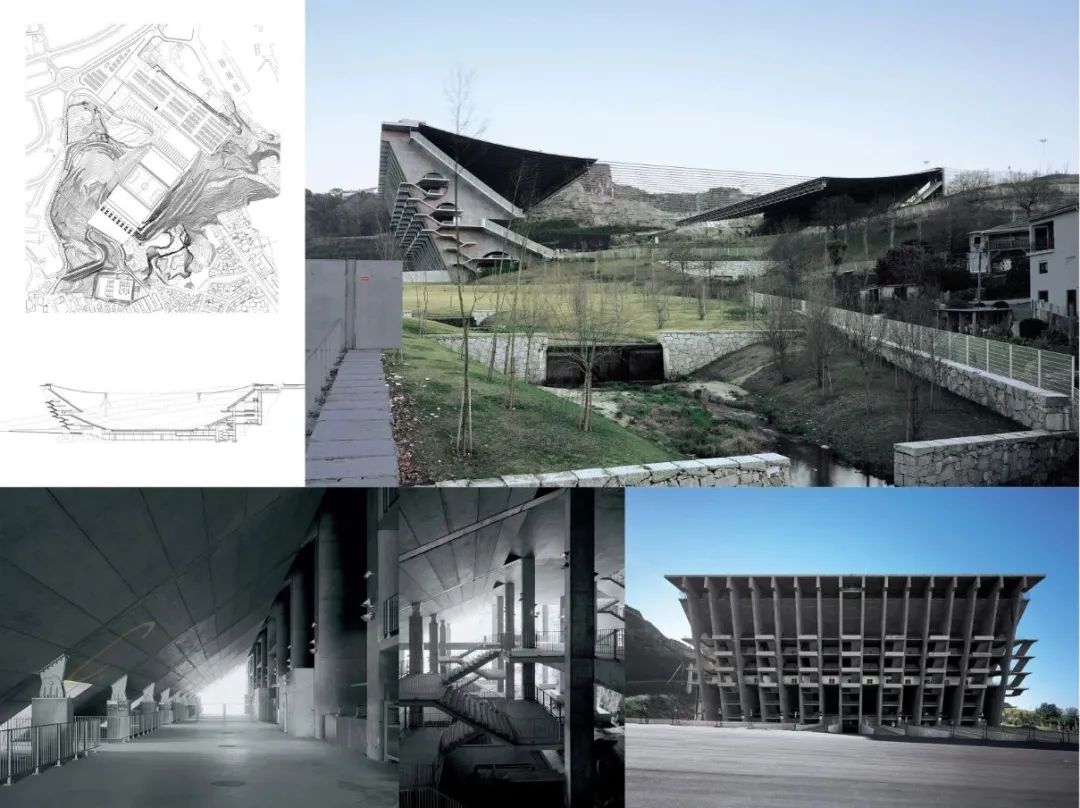 在布拉加運動場項目中,你可以很好的理解這一點。儘管環境是石頭的,但它們並不是天然的。它以前是一個有採石場的山腰。我覺得石頭並不處於天然的狀態,因為它被切割過:它的形態不是自然力所決定的而是人工塑造的。因此我們所做的就是延續這種工作,對石頭進行非天然的塑造。然後我們填進混凝土,這是一種和石頭一樣天然的材料。因此我們首先是把石頭“移走”,然後以另一種方式“製造”石頭。現在很難說出哪兒是一種材料結束、另一種材料開始之處。一種材料依賴於另一種材料:石頭支撐著混凝土而混凝土也同樣支撐著石頭,因為它們並不是統一的—有孔洞存在。這一切形成了一個組合。