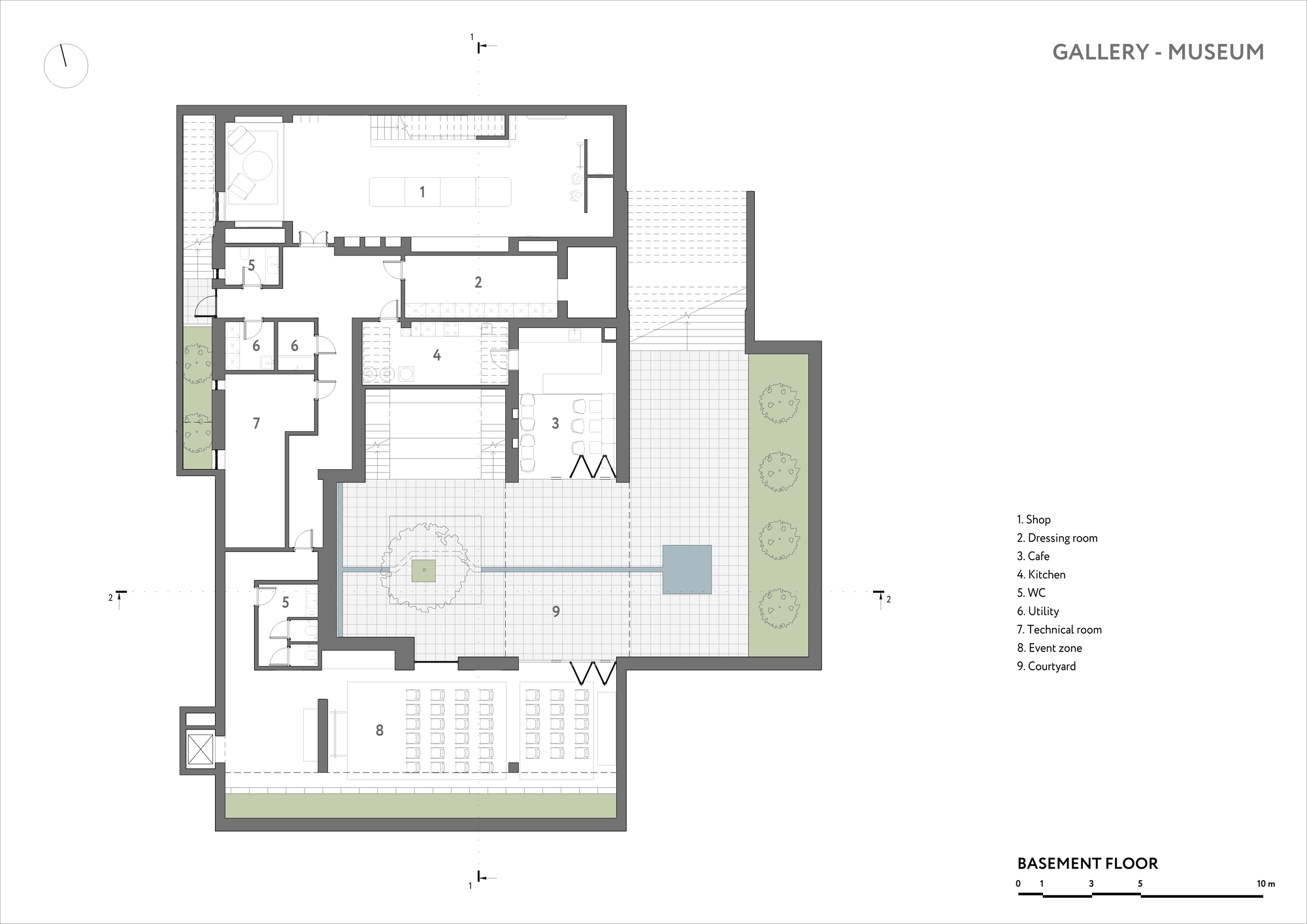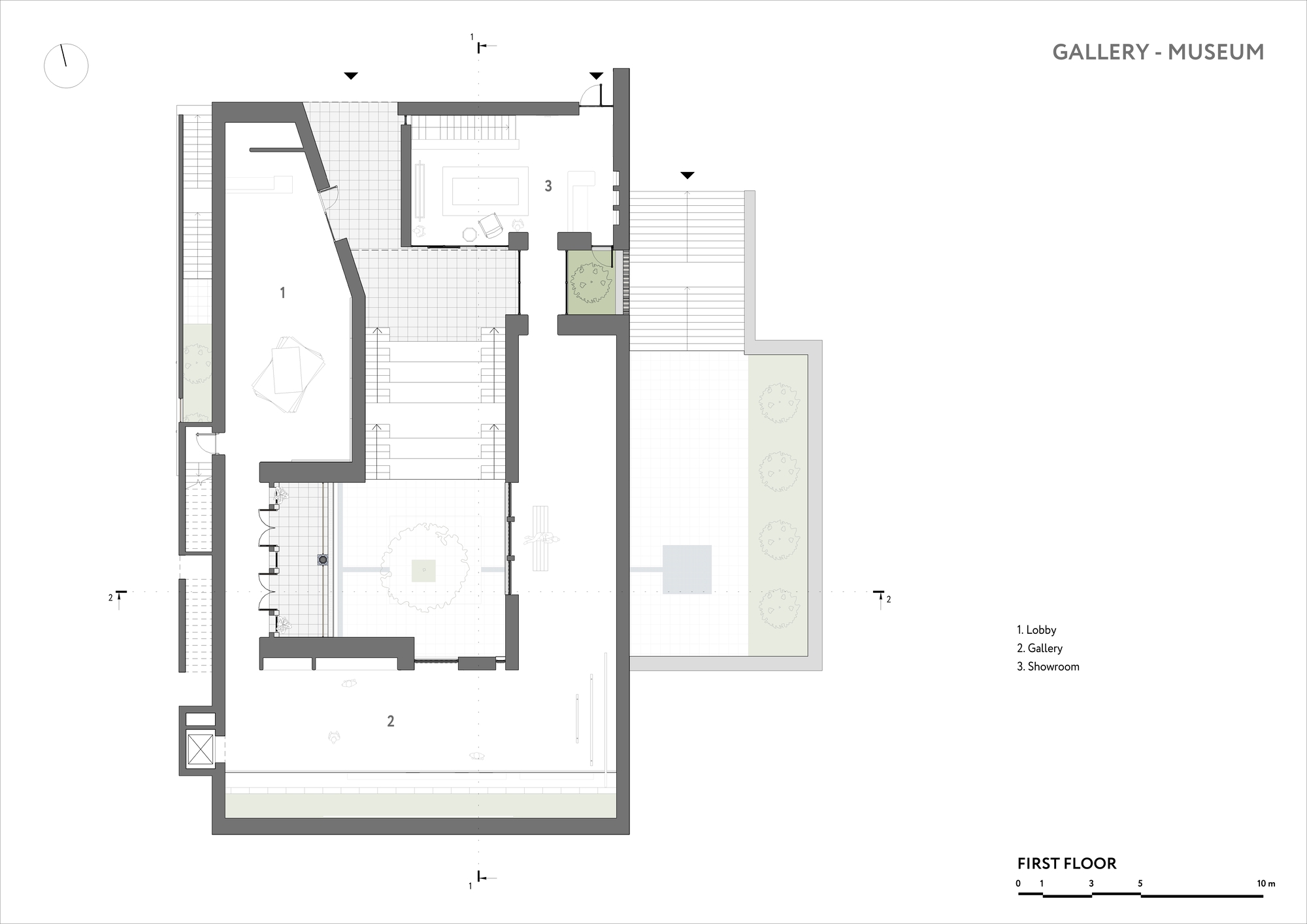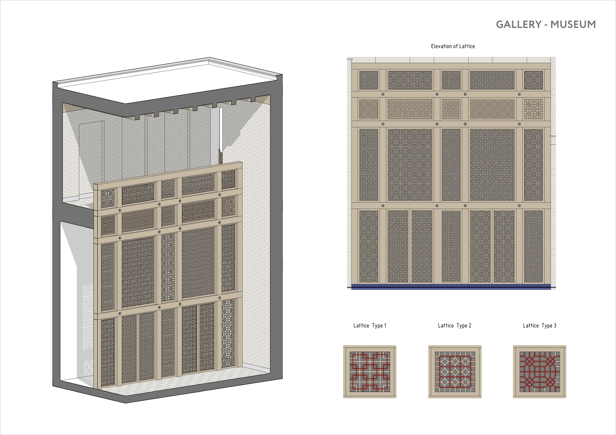 東側的畫廊博物館完全把參觀者的感官體驗作為設計核心。走入中央庭院,挺拔的桑樹映入眼簾,無聲講述著中亞絲路貿易的繁華過往,並象徵絲綢的起源。地面層遵循流暢的環形動線,引領遊客從入口處依序探索陳列著巨幅刺繡作品的主展廳、精緻的藝廊與文創商店。