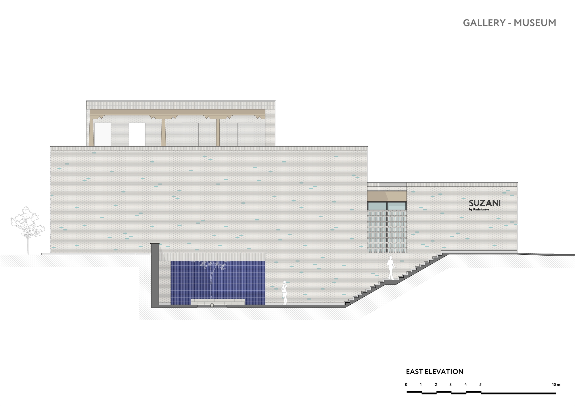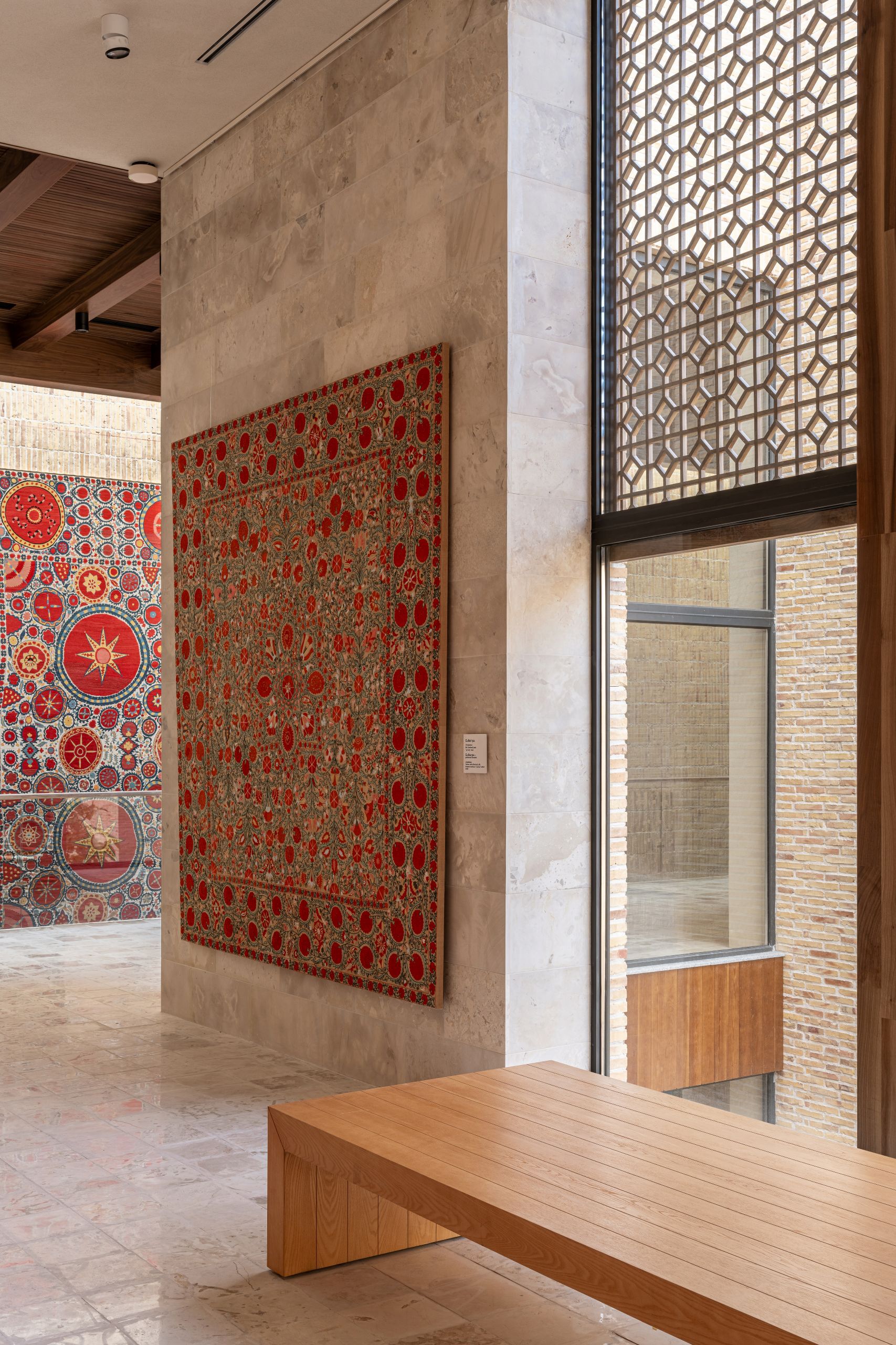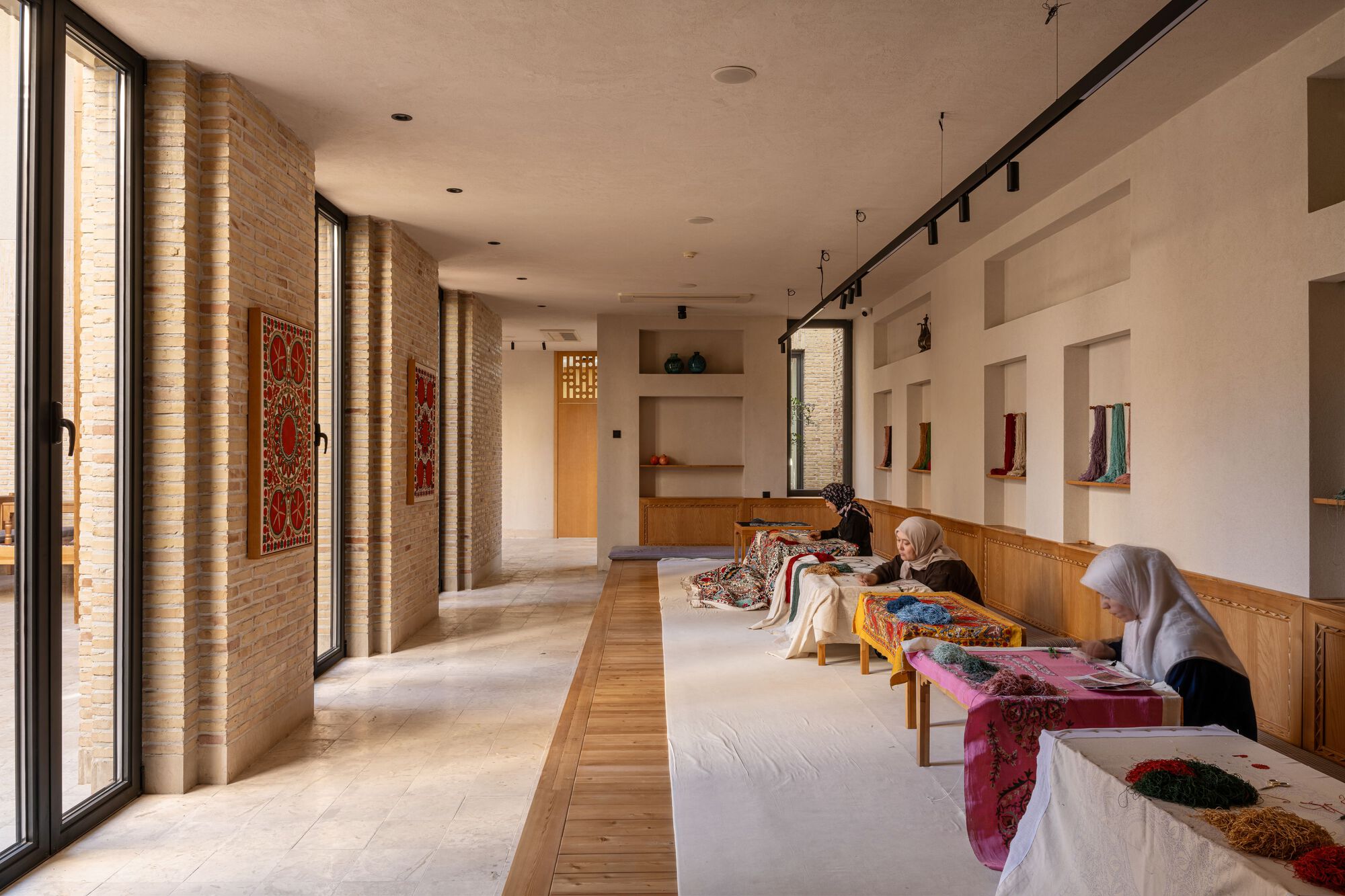 館長Madina Kasimbaeva長年鑽研各區刺繡技法,致力於推廣被視作中亞民族文化命脈的蘇札尼刺繡(Suzani)。為使面臨失傳風險的古老工藝重獲新生,烏茲別克建築師事務所 ARC Architects 將基地轉化為集結生產與展覽功能的複合式場域,充分反映出當代建築對文化遺產的積極回應。