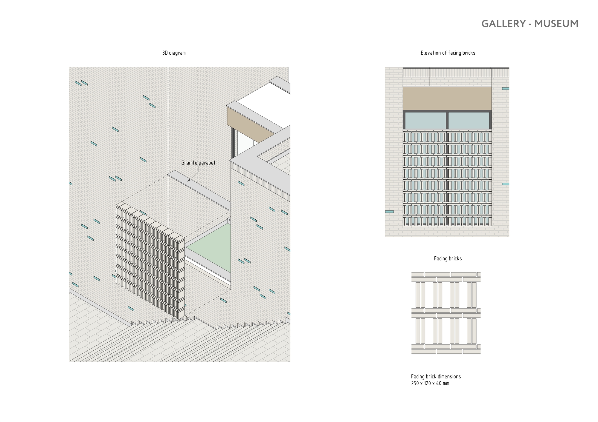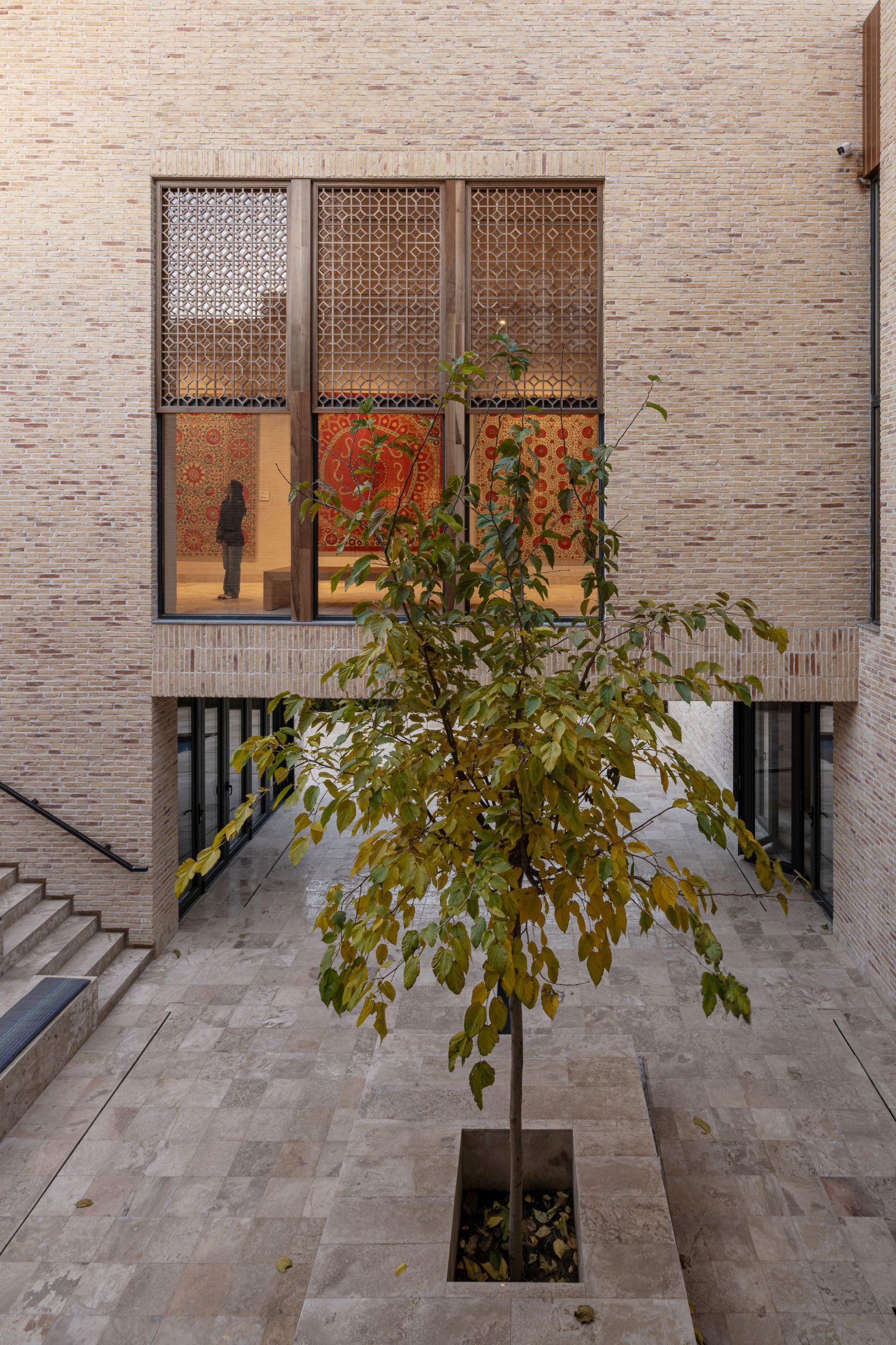 建築立面的表情,決定它與城市對話的姿態。全區外牆大量採用名為「g’ishti obi」的烏茲別克傳統紅磚砌築而成,粗獷且充滿手感溫度的表面,散發著難以言喻的歷史滄桑感。在室內外的裝修細節上,建築團隊堅持選用產自當地的天然建材,包括色彩鮮豔的陶瓷磚、堅固的石灰岩以及質樸的泥抹灰。取自大自然的天然元素,隨著時間推移將產生豐富的光澤變化,帶出更為迷人的建築紋理(Texture)。在總面積950平方公尺的基地上,創造出高達1200平方公尺的總樓地板面積,不只解決都會區用地緊湊的難題,更為塔什干留下一方傳承刺繡藝術的淨土。