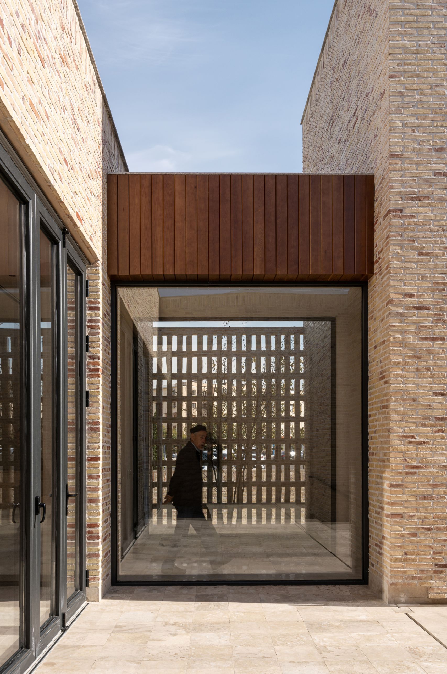 整個文化園區被精準劃分為東側的畫廊博物館與西側的生產工作坊兩大主體。設計團隊捨棄單調的巨大方塊,轉而向中亞傳統住宅與手工藝作坊取經,採用經典的周邊環繞式佈局。多個庭院依循地形高低錯落有致地排列,形成宛如迷宮般卻又層次分明的空間動線。庭院中央特別保留名為「ayvans」的傳統捕風塔,迎著當地盛行風向,引導自然微風穿梭於室內外,大幅降低對人工空調的依賴。