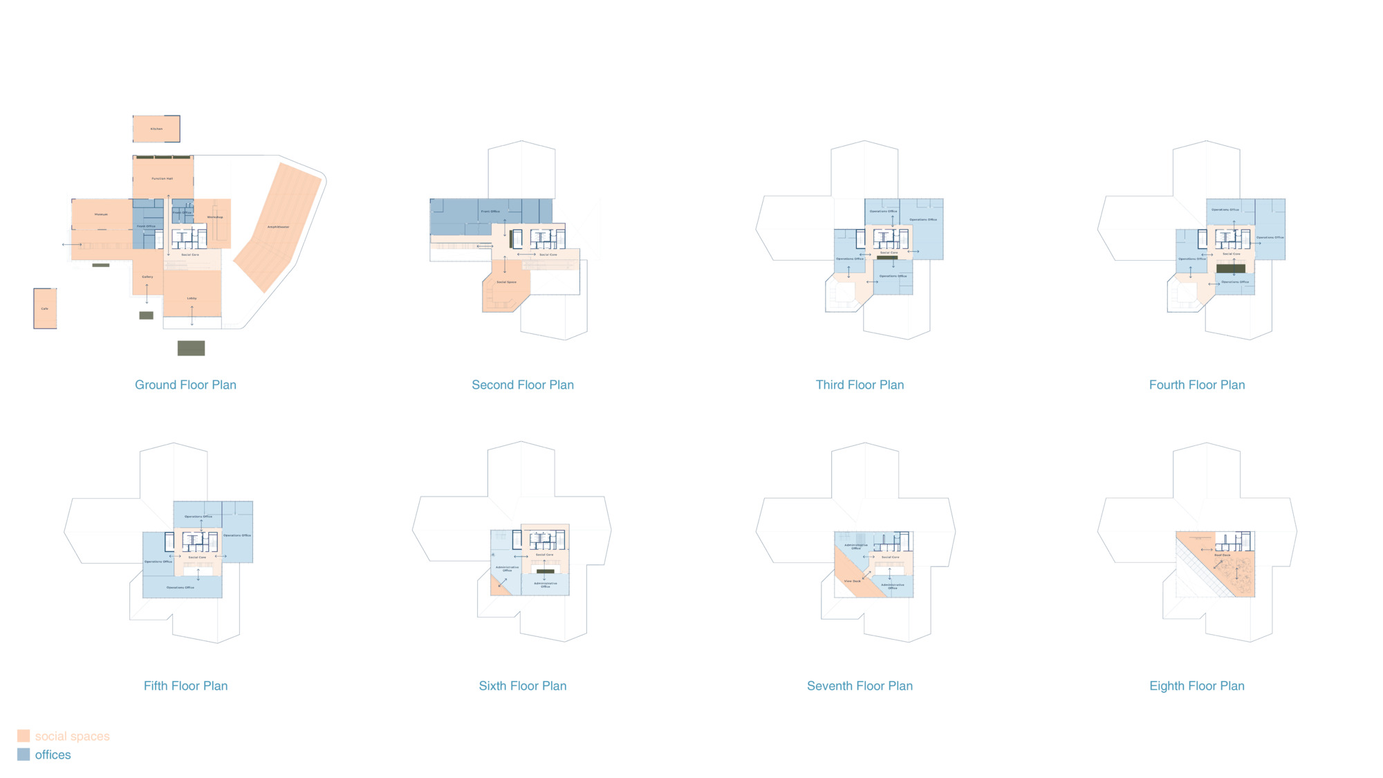 塔蓋泰市府的設計核心,在於擁抱城市三大核心影響力,並賦予城市全新的文化印記。建築師將市府空間規劃為多層次的擠壓體,將行政部門與市民公共空間垂直分佈,最頂部則以一個菱形建築意涵的「山脊」收尾。這個斜切的幾何符號,不僅是建築的視覺重點,更象徵著壯觀的塔爾火山口(Taal Caldera),這是塔蓋泰地理特徵的具體而微。
