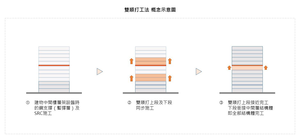 雙順打施工法為縮短工期而採用,但會增設工作平台等費用。