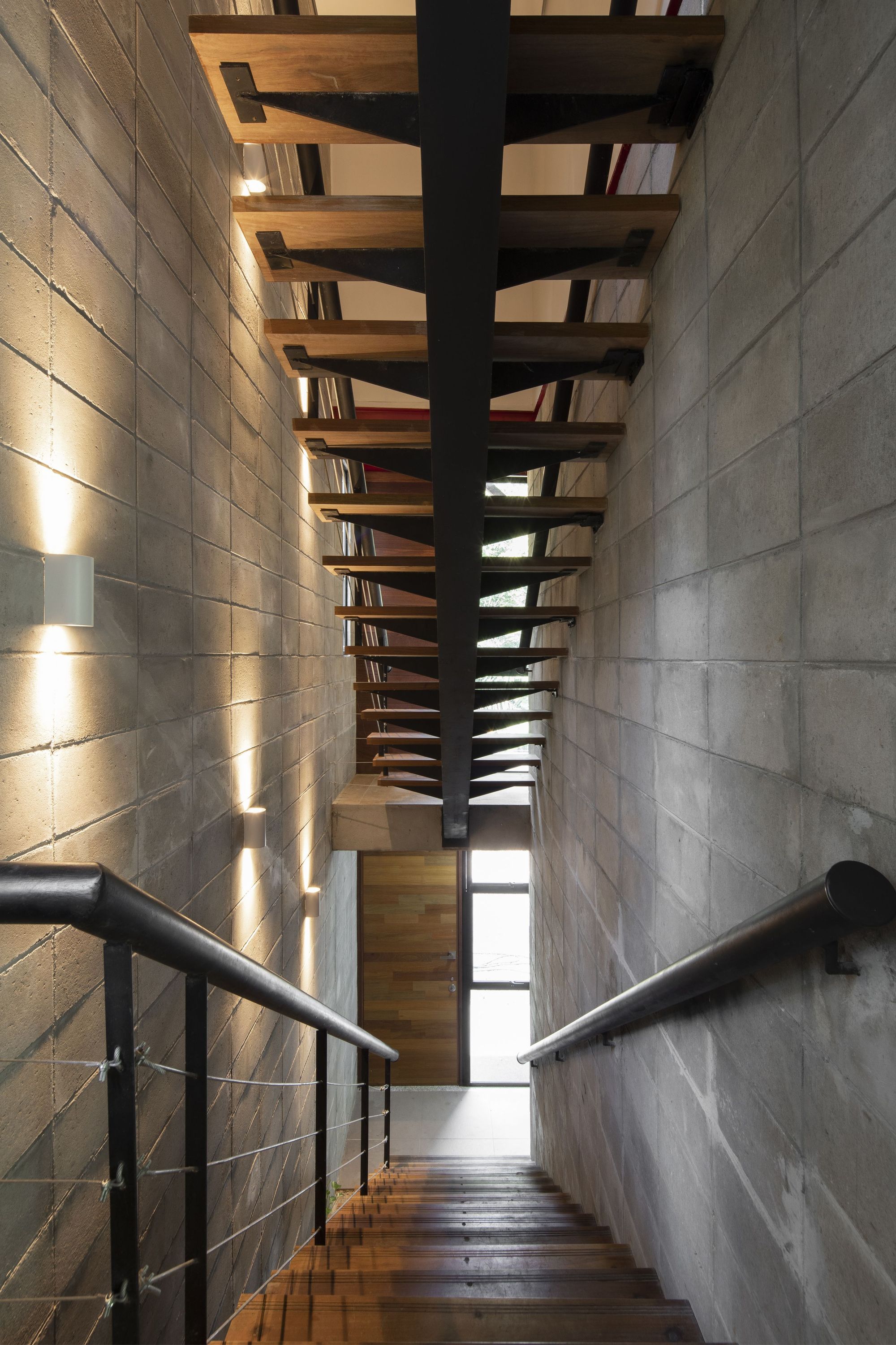 地面層因此獲得了高度的靈活性,可以根據使用需求自由調整。承重的混凝土砌塊核心筒(Masonry box)扮演了關鍵角色,它不僅容納了樓梯與衛浴等服務核機能,更作為鋼結構一端的穩固支點,另一端則由一對混凝土柱支撐。這種結構與機能的完美整合,展現了建築師在構造邏輯上的清晰思維,以最精簡的元素達成了最大的空間效益。