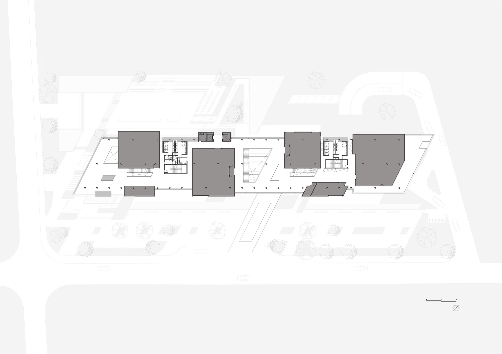 地面層規劃了商業設施與一座迷你博物館,作為對外開放的活力介面;二樓與三樓則容納了共享辦公空間與教室,為知識交流提供了彈性場域;更私密的獨立辦公室、多功能廳及媒體室則被安置在三樓。