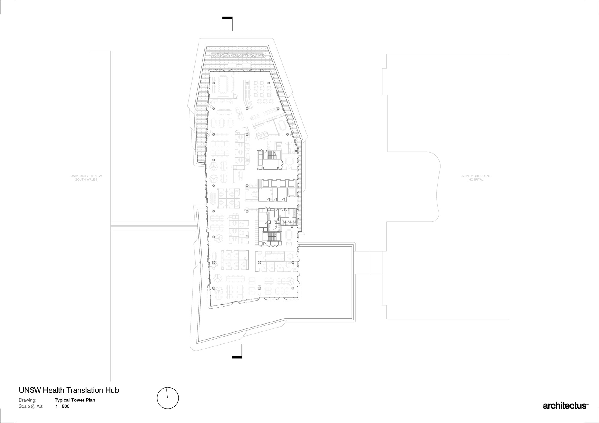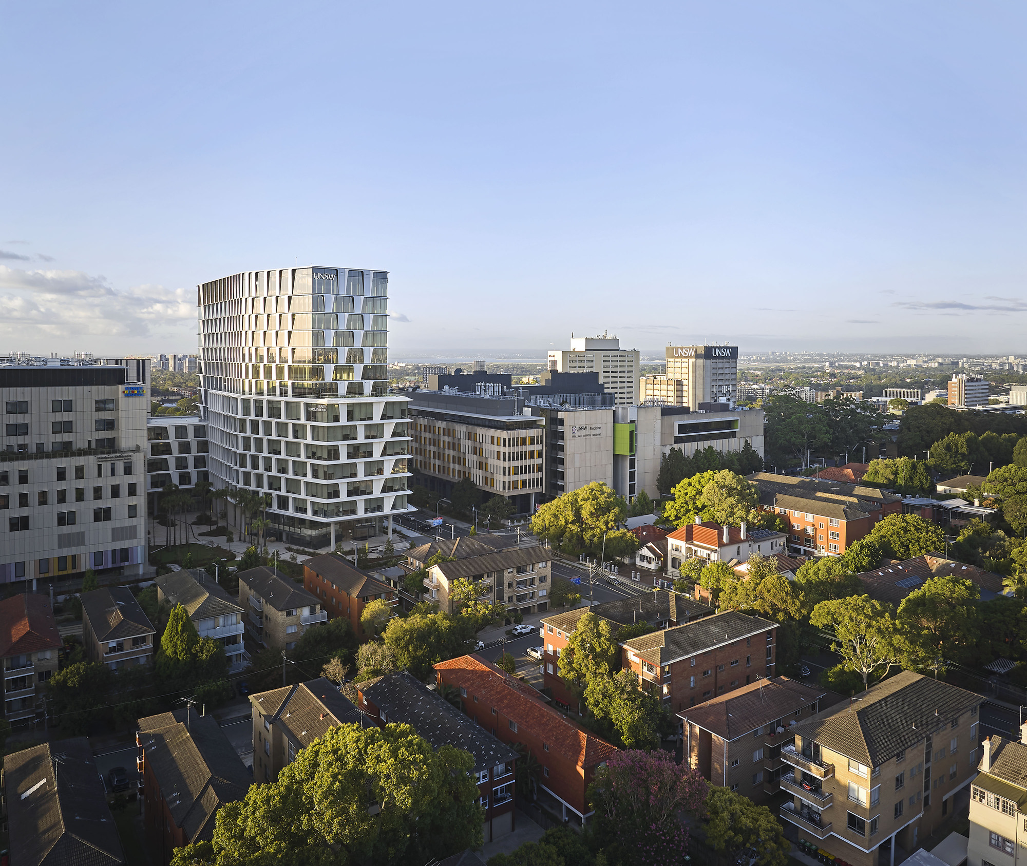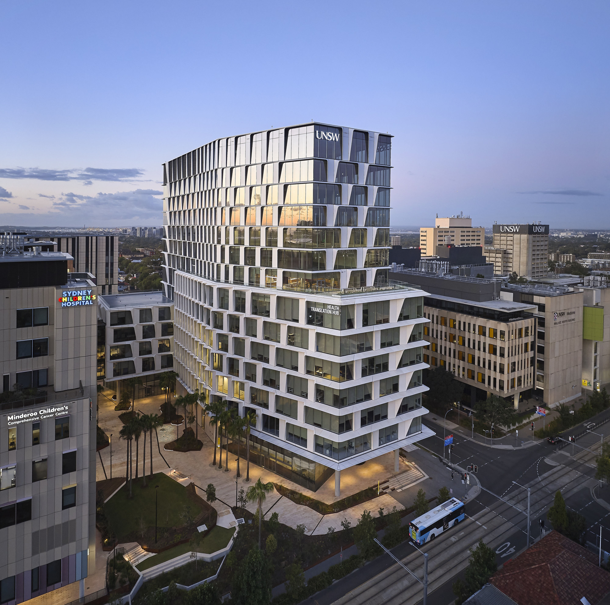 新南威爾斯大學健康轉譯中心 (UNSW Health Translation Hub) 由業界極具盛名的 Architectus 建築師事務所負責規劃設計,傲然挺立於澳洲雪梨 (Sydney, Australia) 的重要醫療樞紐。該醫療建築作為串聯新南威爾斯大學肯辛頓校區與蘭德威克健康創新園區的關鍵橋梁,期盼在教育、研究與臨床照護間建立起極為高效的生態循環系統。