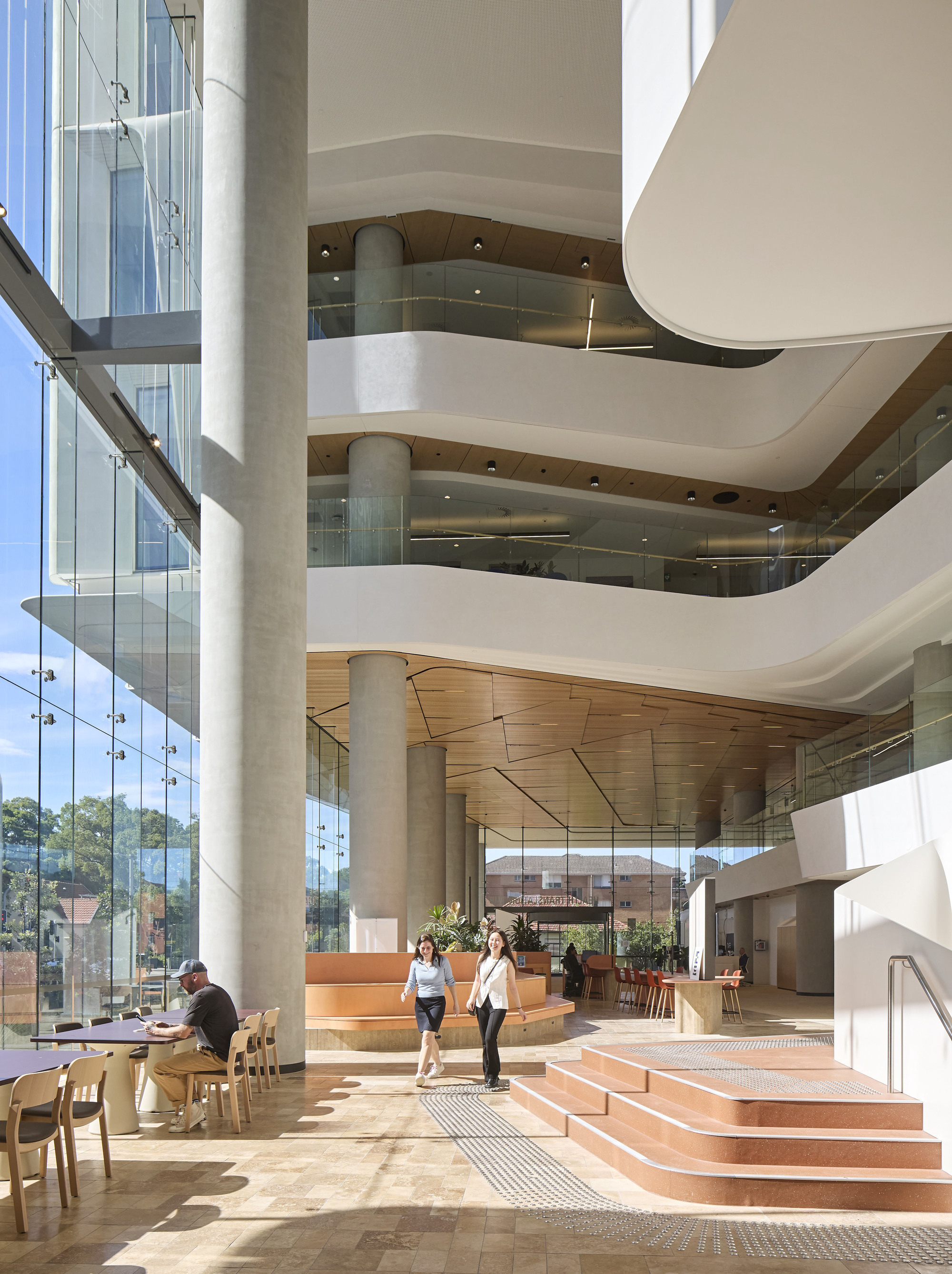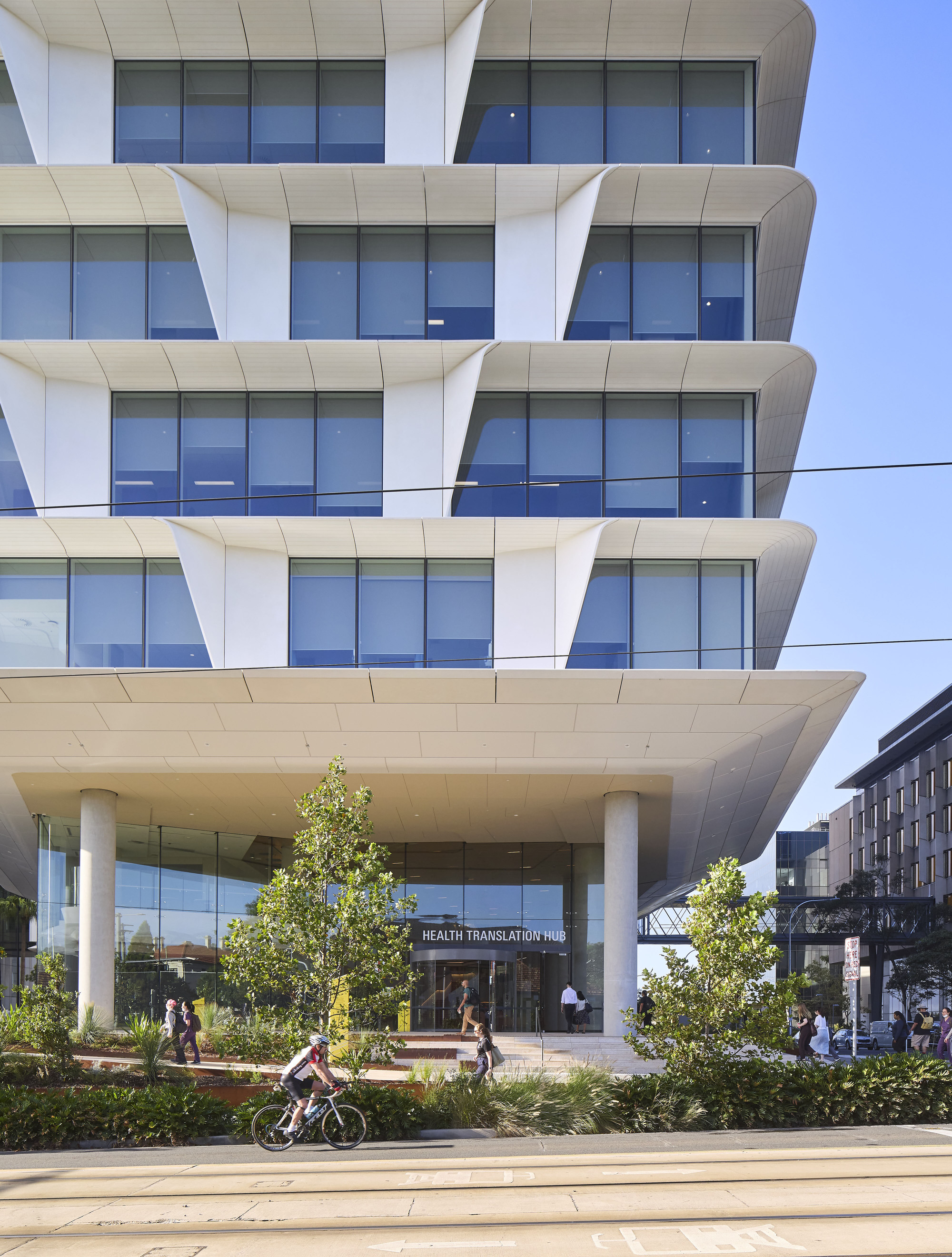 回顧雪梨市政府近年推動的「大雪梨都會區計畫」,強調步行城市與公共運輸導向發展,該轉譯中心的空間佈局恰好與官方政策不謀而合。高聳的建築量體並未阻斷城市的呼吸節奏,反倒化身為串聯四面八方的交通樞紐,每日承載數千師生、醫護與病患家屬安全通行,將醫療園區的公共價值發揮至極致水準。