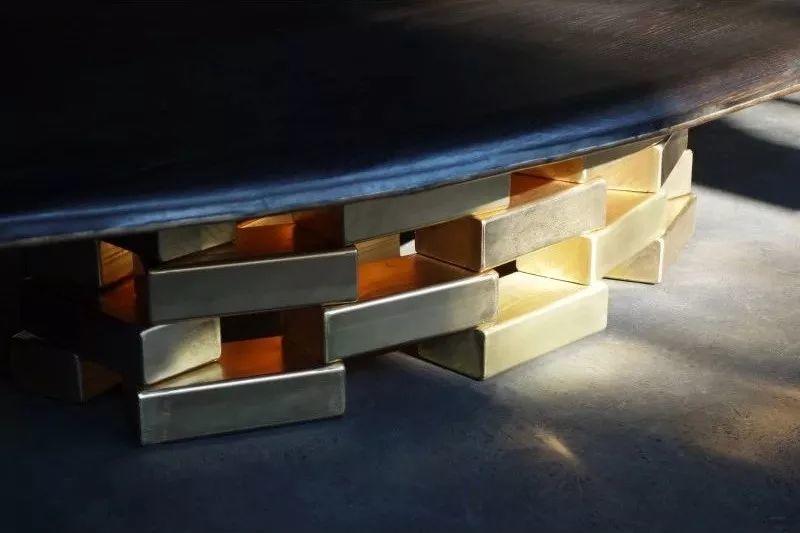 Block 系列靈感來源於建築,層疊的金屬塊被銲接在一起,並鍍上了銅和黃銅,散發出的溫暖的光線