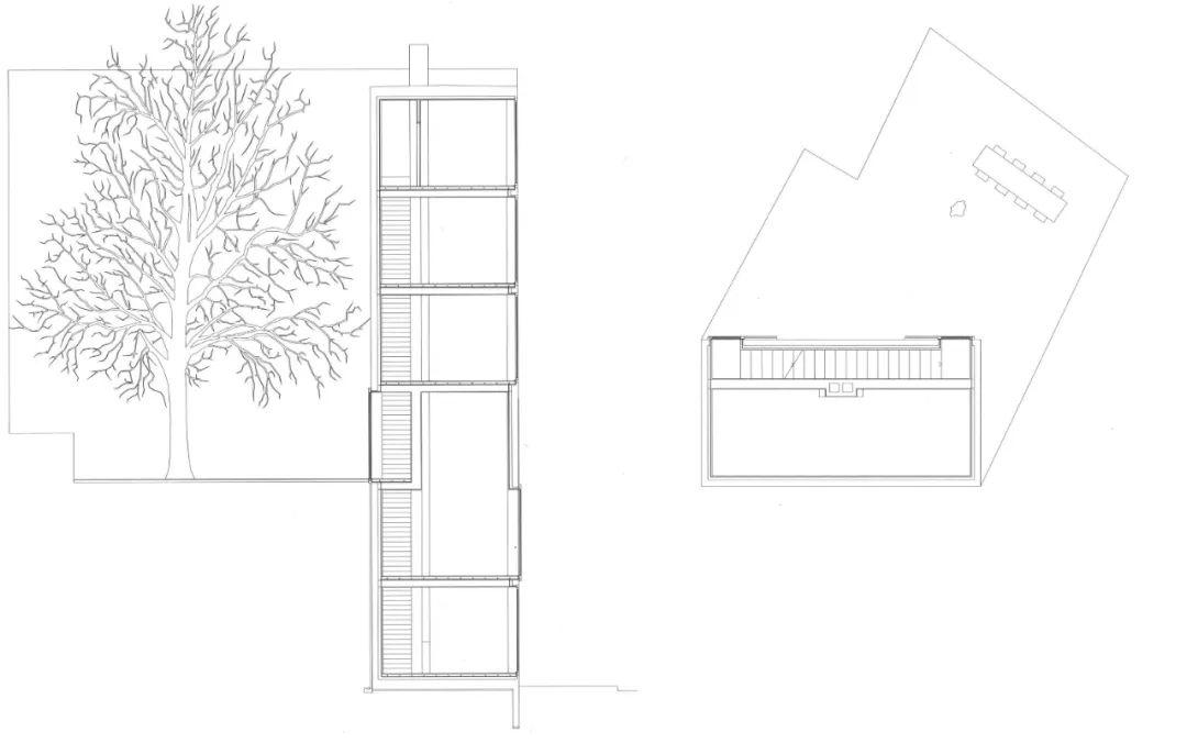 這是另一位瑞士傑出的年輕建築師Raphael Zuber學生時代的作品,一個由一連串房間組成的垂直向住宅。這個住宅還包括一個位於第三層標高的院子。