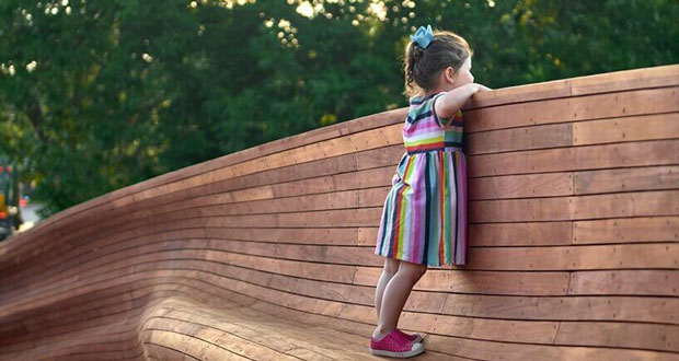 總部位於俄勒岡州的設計師Volkan Alkanoglu完成了一座名為「漂流 」(drift)的有機起伏人行步橋;木材和鋼結構在工廠生產,在德州Fortworth僅耗費數小時時間就安裝完成。「漂流 」人行步橋包容了公共藝術、公民設計、建築和基礎設施等目的,是一個由社區發動的特殊計畫,社區的兩半之間原本被一條小河隔開,藉由這座小,採用製造和安裝技術,讓社區連結更為緊密。