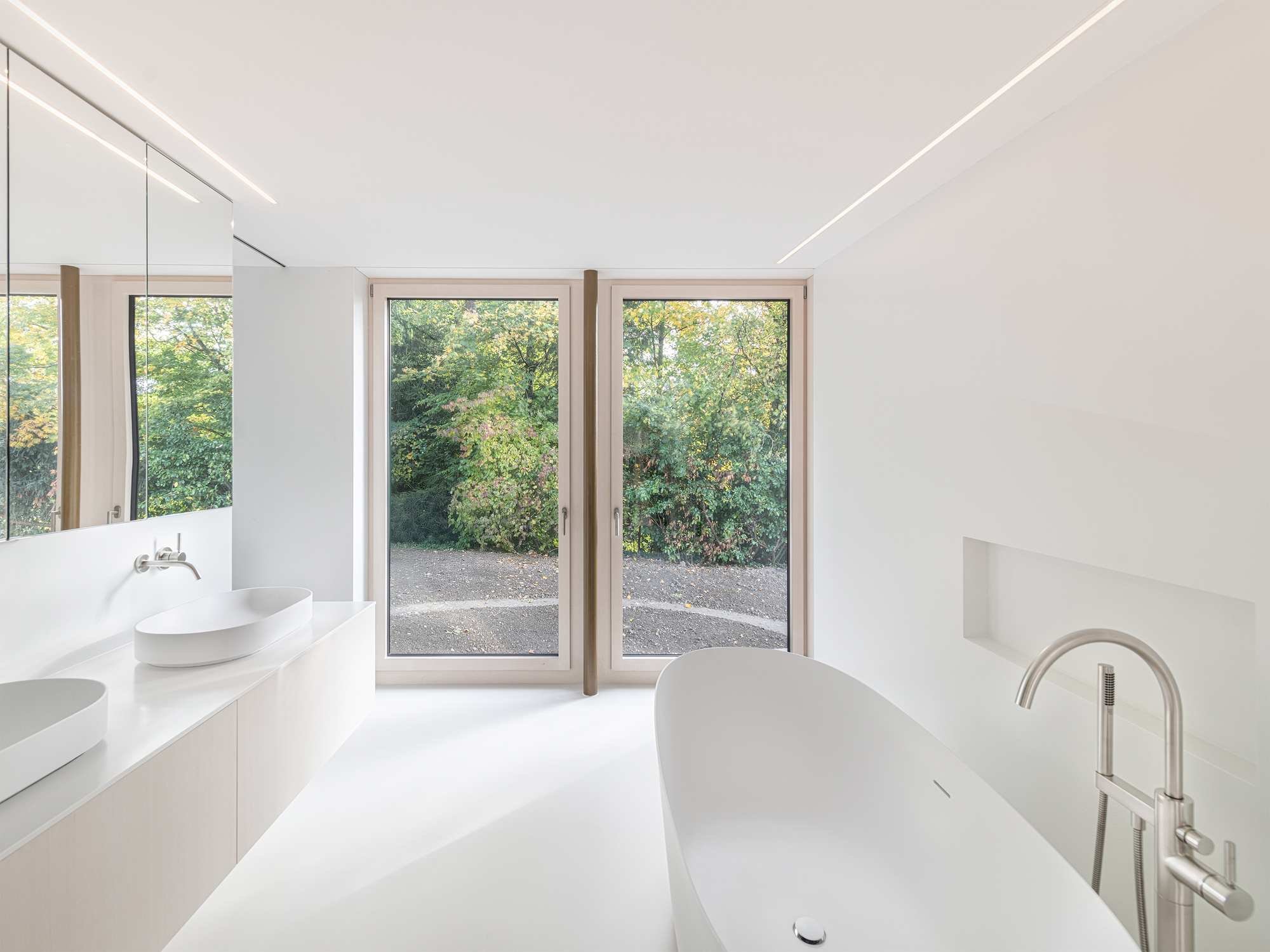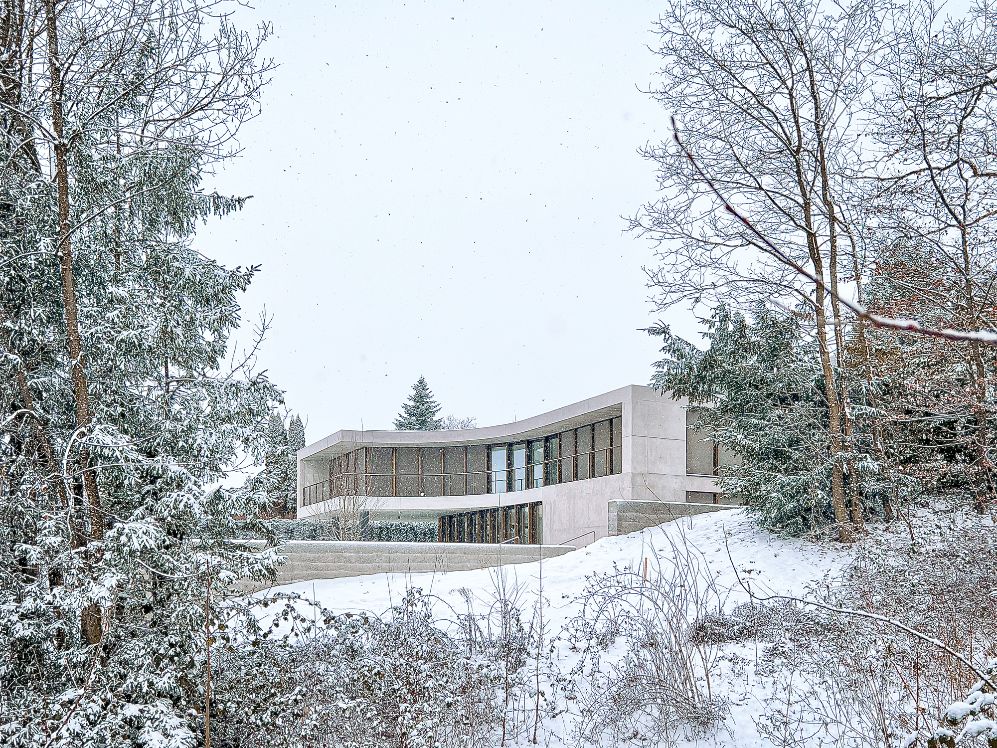 座落於蘇黎世州(Canton of Zurich)的 Winkel,基地被茂密的森林與開闊的山谷環抱,得天獨厚的地理條件成為設計的核心驅動力。建築師順應地形,將雕塑般的量體姿態置入環境,Winkelhaus 透過地熱與太陽能系統的無縫整合,達成百分之百的能源自主。