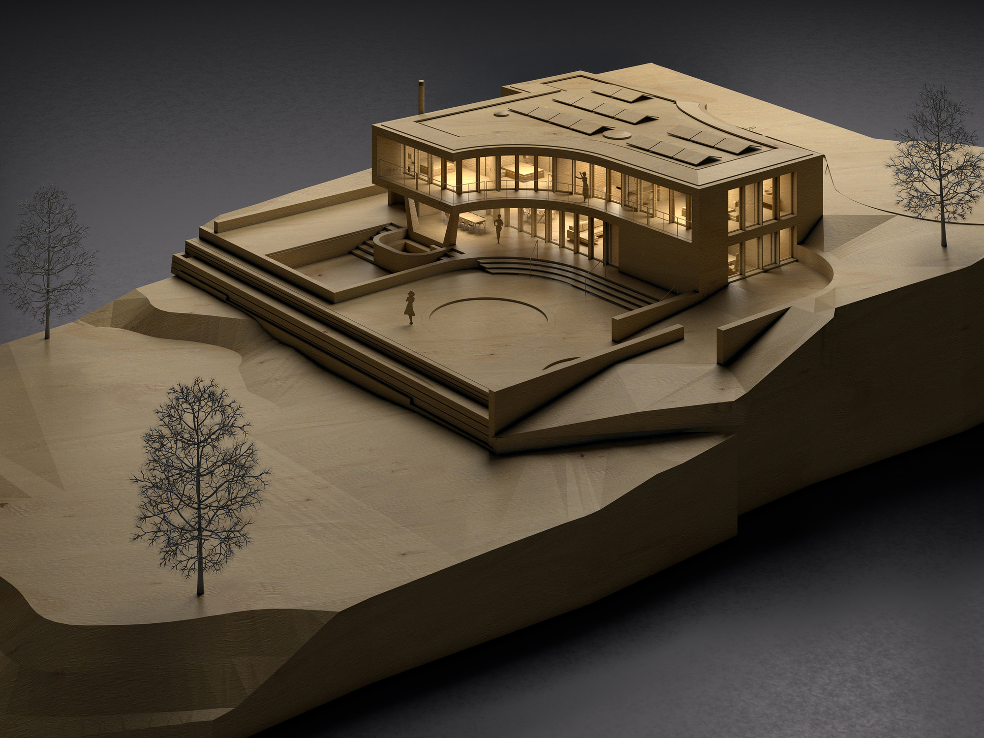 Winkelhaus 的成功,歸功於其獨特的設計流程。estudio kmmk 摒棄了傳統「先設計後工程」的線性模式,轉而採取了一種高度整合的協作機制。從概念發想的初始階段,結構工程師與景觀建築師便深度參與其中,這種跨領域的早期對話至關重要。它使得團隊能夠在設計發展的同時解決複雜的技術難題,確保了那充滿挑戰性的曲線幾何能夠被精準且高效地落實,而無需在後期為了遷就結構限制而犧牲建築的美學意圖。