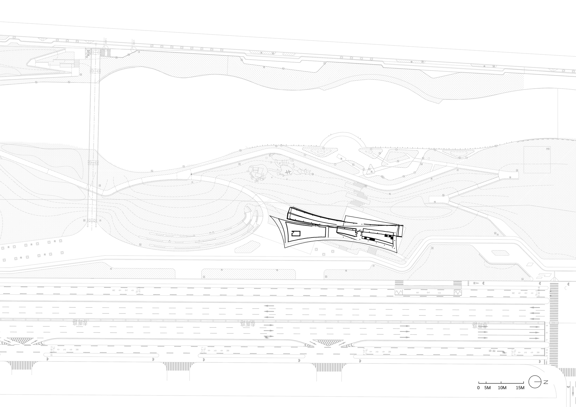 建築坐落於科創路與科文路交匯處,緊鄰新區中軸線春暉路,肩負著串聯楊家河生態廊道與慢行系統的重任。在傳統城市規劃中,綠化配套商業往往與公園綠地涇渭分明,彷彿兩條平行線;然而,本案試圖打破這道藩籬,透過建築介入,重新定義公共生活與商業參與的邊界,讓建築不再只是冰冷的物理容器,而是能與自然呼吸共融的有機體。