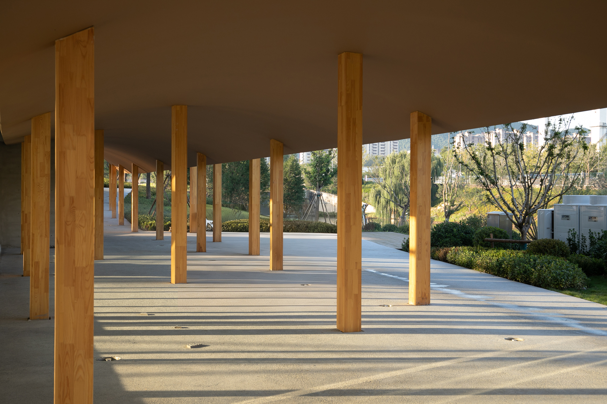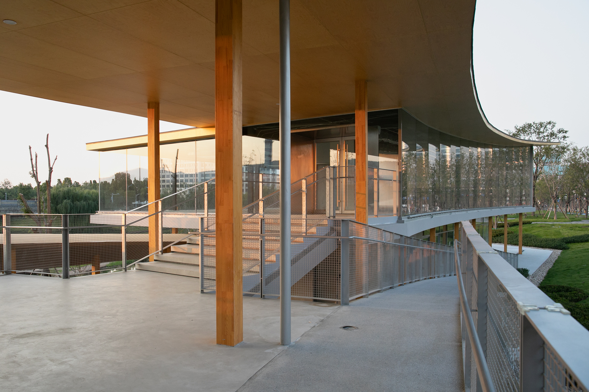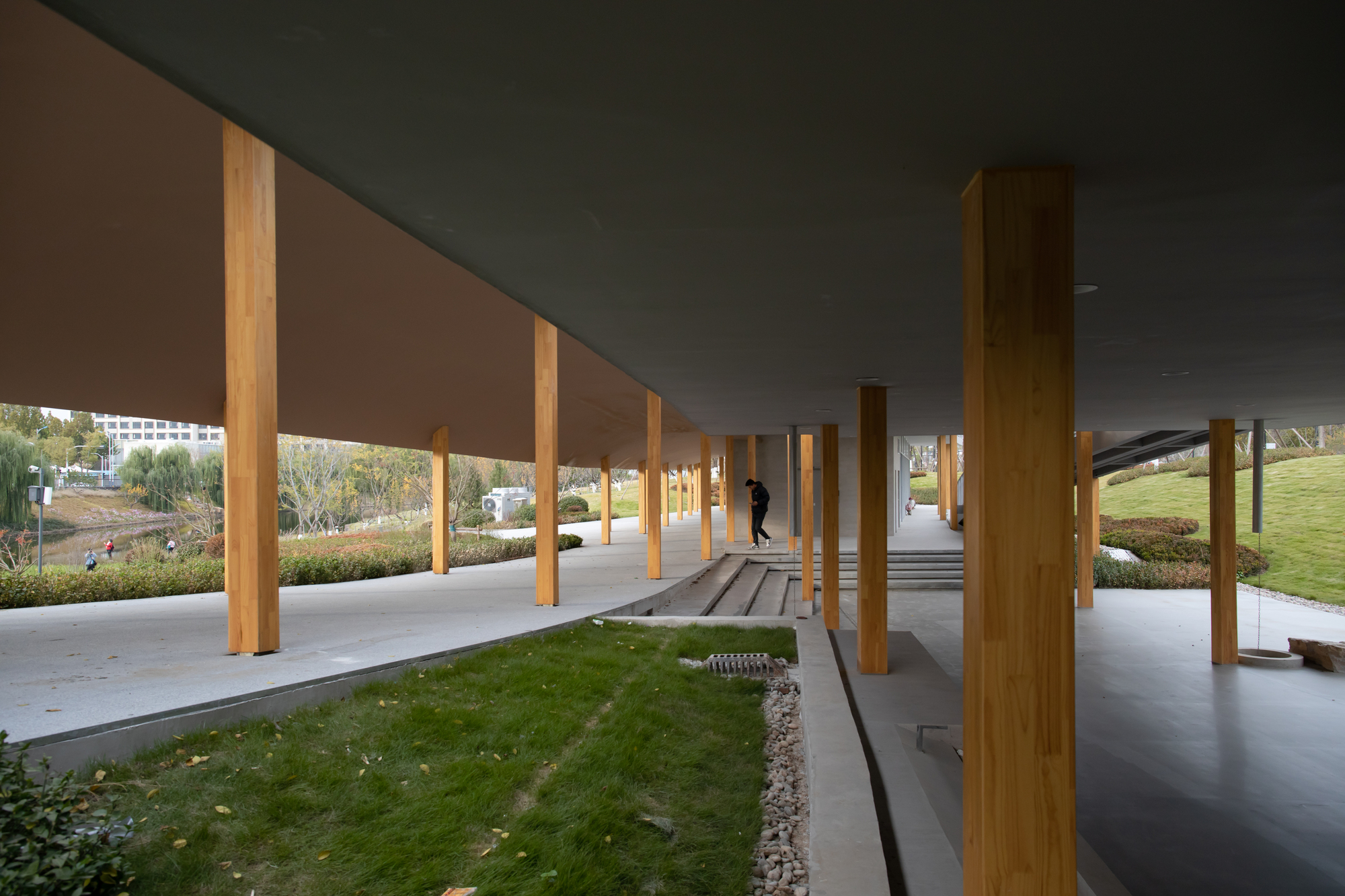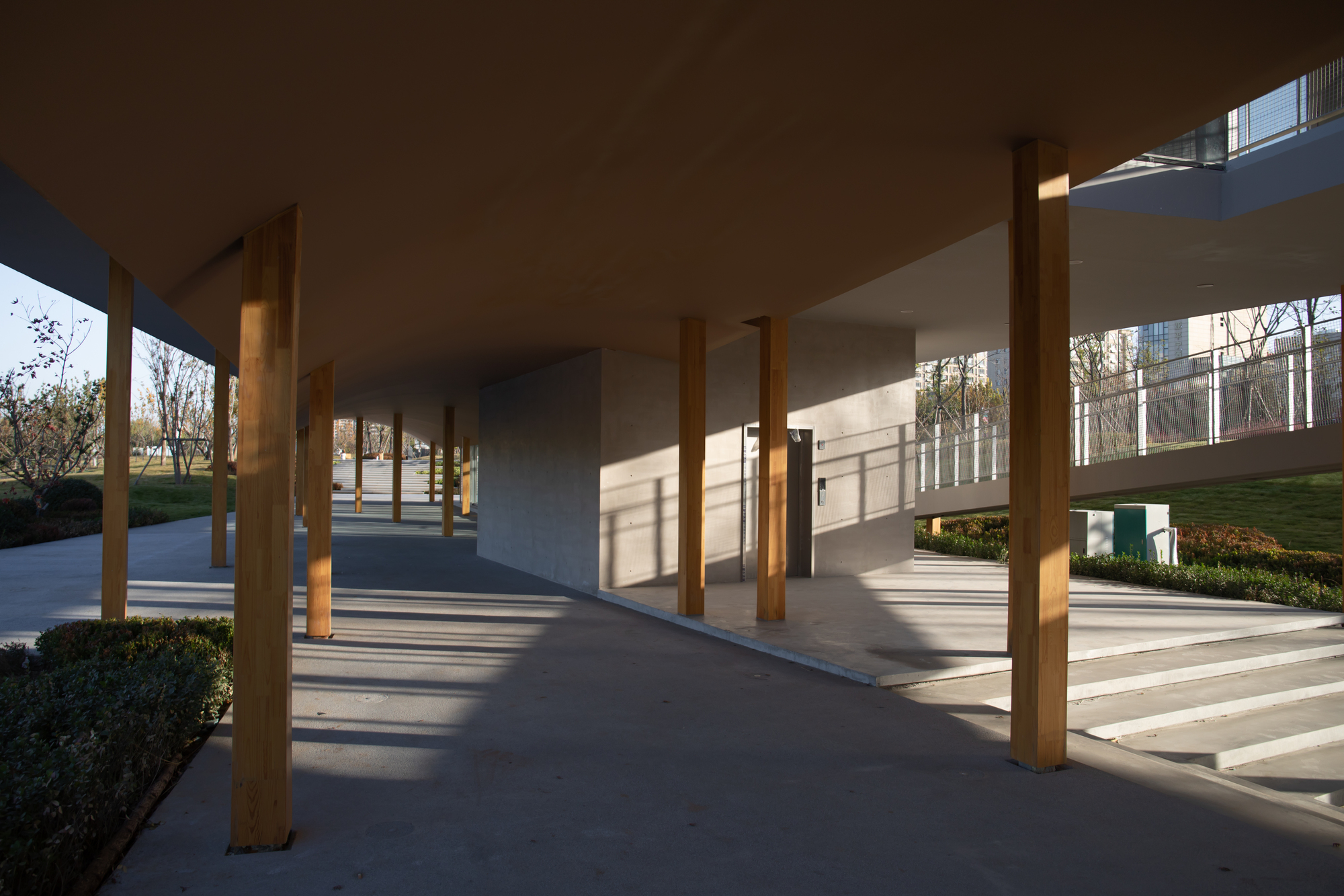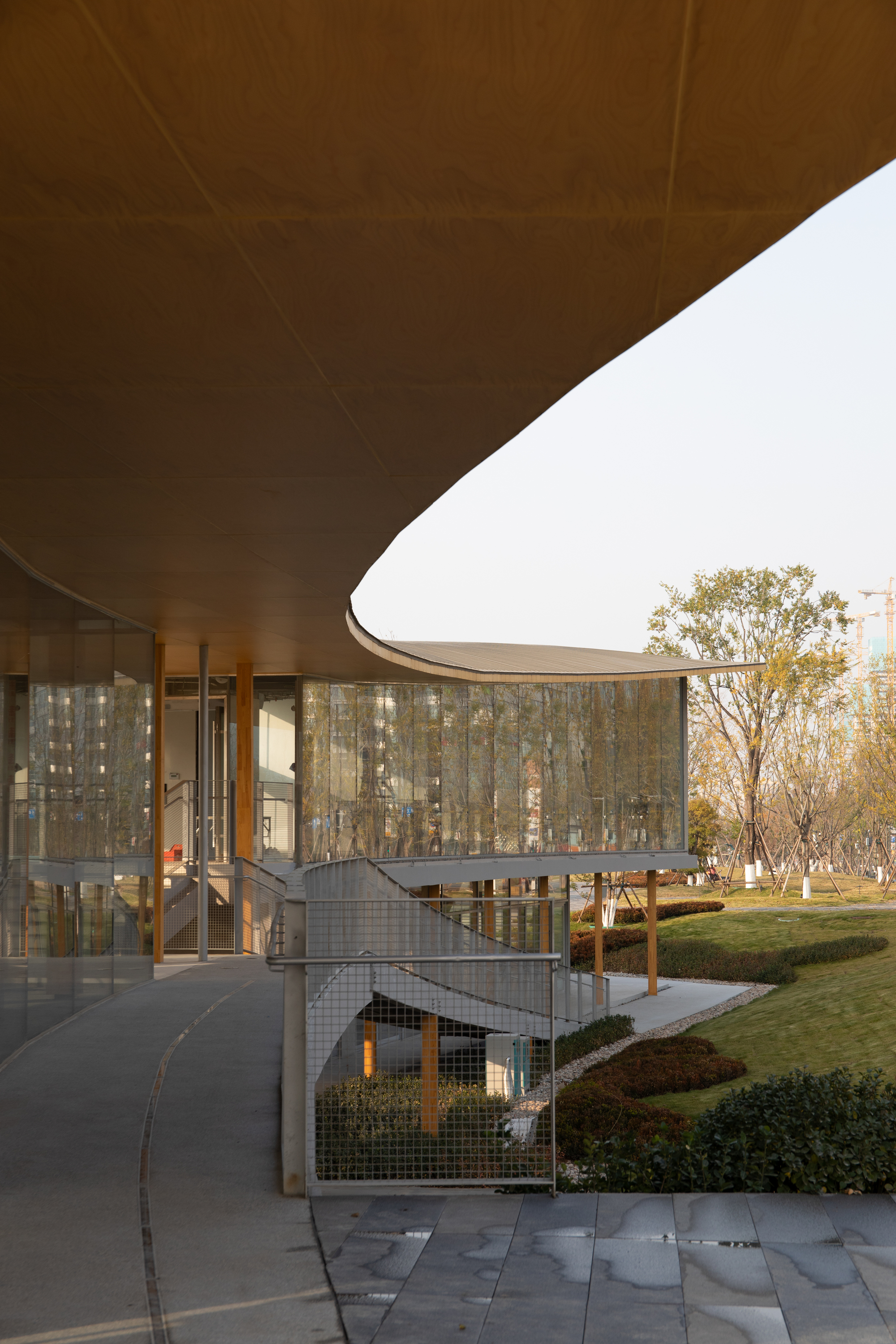 打破公園建築的刻板印象,濟南楊家河四號建築,一介建築運用雙曲面板桁架與長廊設計,創造全天候互動的城市綠洲