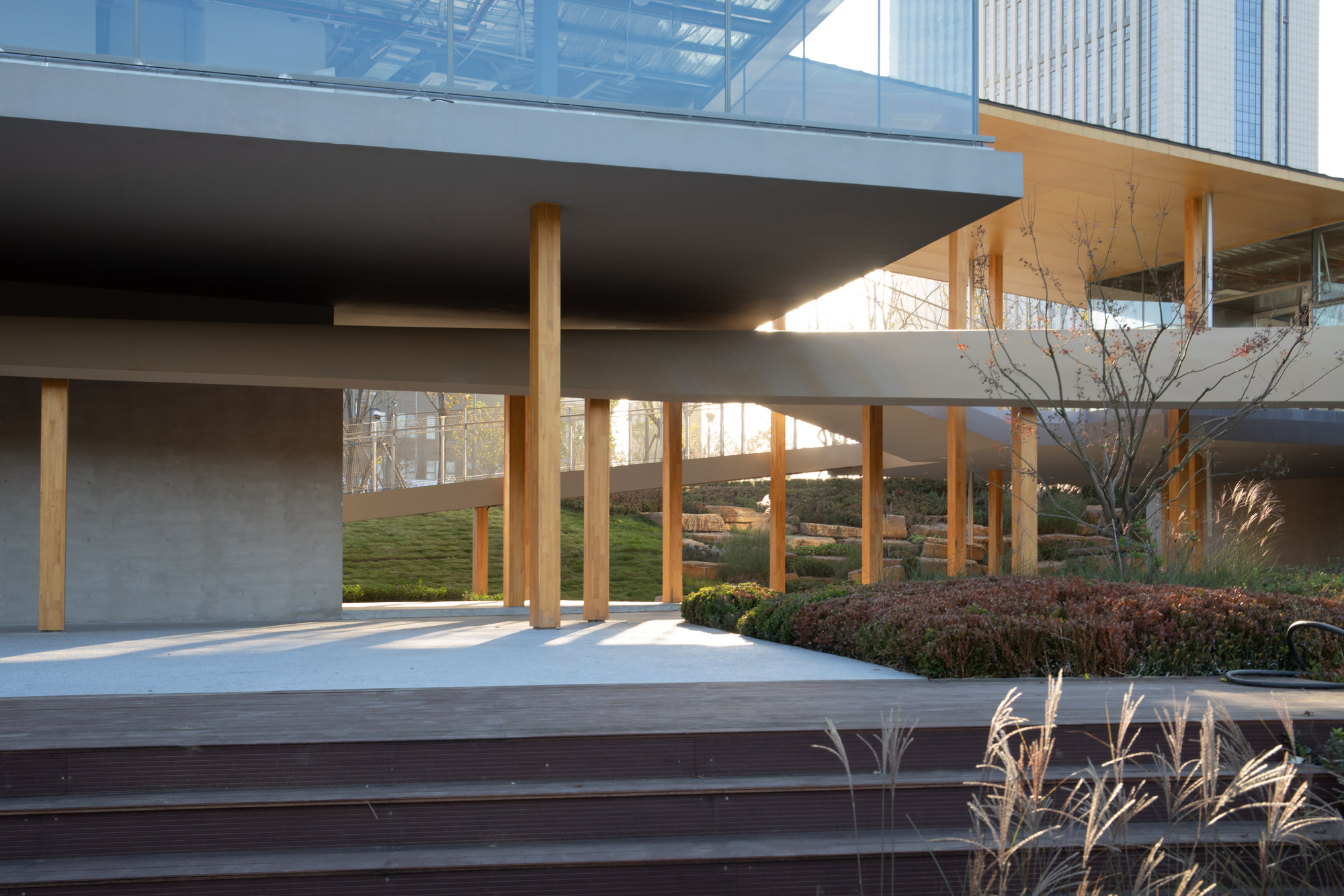 作為濟南東昇城市更新發展有限公司委託的重點項目,楊家河4號建築的落成,標誌著濟南在城市更新進程中對於精緻化空間品質的追求。它不單是一座服務於周邊科創園區的配套設施,更是一處示範性的景觀建築。透過建築與景觀設計團隊(中建西南院)的緊密合作,以及結構(iStructure)、幕牆(久科工程諮詢)等多專業的整合,本案將城市願景落實為具體的空間體驗。它證明了在快速發展的新區建設中,建築可以不必是張牙舞爪的地標,而是能夠謙卑地融入環境,成為承載市民記憶與情感的溫柔容器,為未來的城市公共空間設計提供了一個值得參照的共生範本。