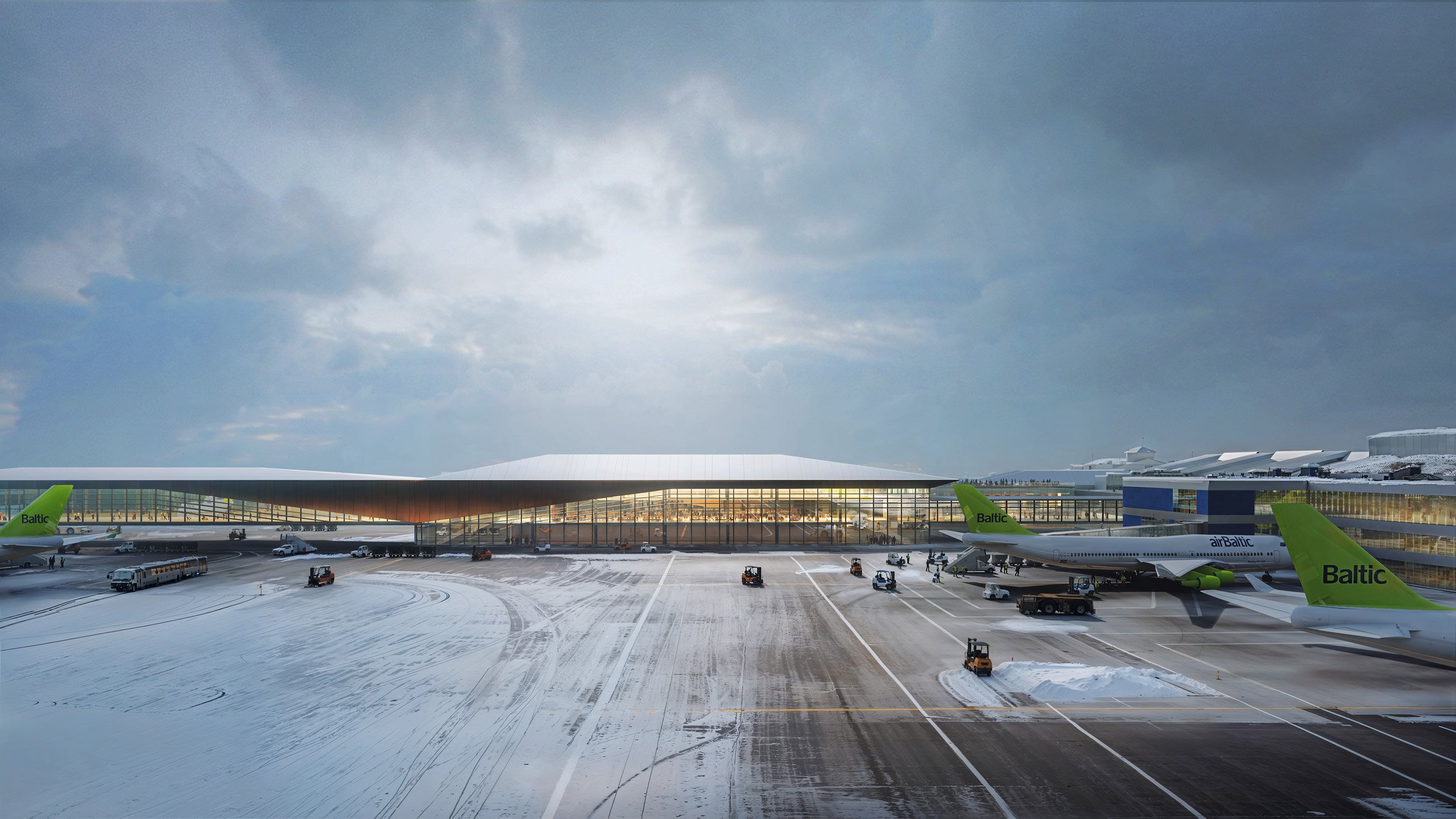 為應對立陶宛日益增長的航空客運量,並鞏固其在波羅的海地區的樞紐地位,英國建築師事務所 Zaha Hadid Architects 為維爾紐斯機場擘劃了一座全新的入境航廈。此案不是單純的增建案,而是一項宏大交通總體規劃的關鍵部分,未來將無縫串聯高速鐵路、地方巴士與自行車道等多元運具,展現繼往開來的企圖心,為立陶宛的經濟成長注入強勁動能。