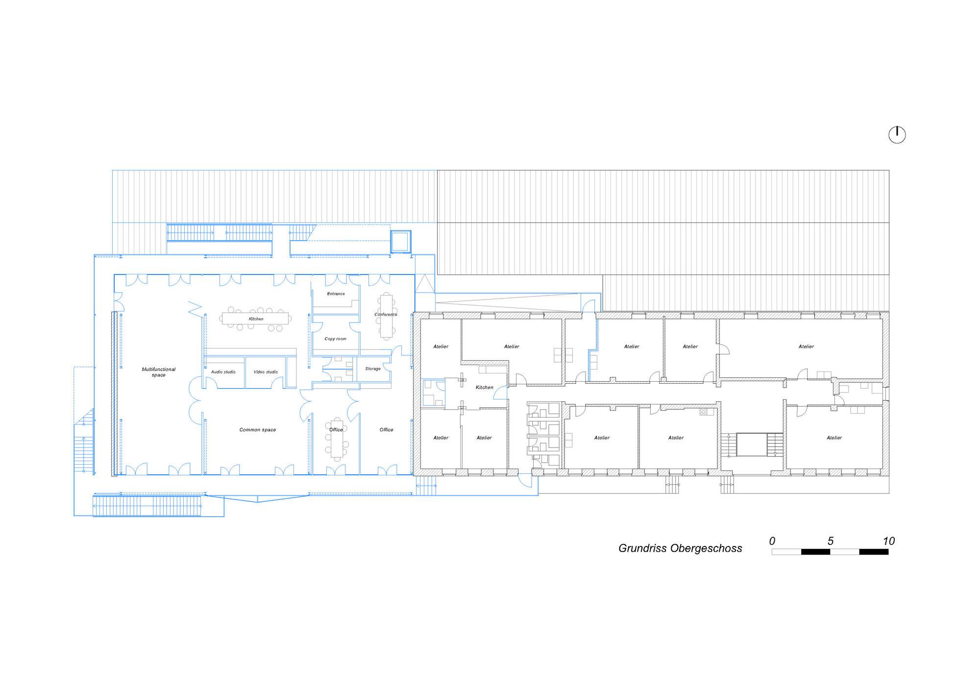 最終的解決方案,是在原有的、未設暖氣的舊倉庫之上,增加一個全新的樓層。因地制宜的垂直增建策略,不但解決了空間問題,更成為都市密度與綠地保存兩難下的一個智慧解答。